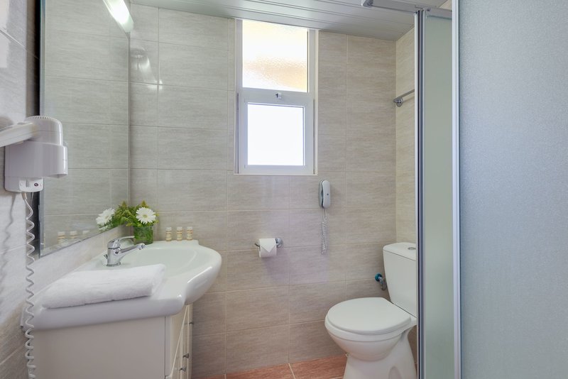 Doppelzimmer: Die Zimmer verfügen über Dusche/WC, Telefon, Sat.-TV, Minikühlschrank, Klimaanlage (gegen Gebühr), Wi-Fi, Föhn und Balkon oder Terrasse (D).