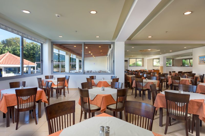 All inclusive: svédasztalos reggeli, ebéd és vacsora. Kávé/tea és péksütemények 15 órától 18 óráig, helyi alkoholos és alkoholmentes italok (üdítők, ouzo, sör és bor) 11 órától 23 óráig. 18.30-tól 23.00-ig koktélok.
