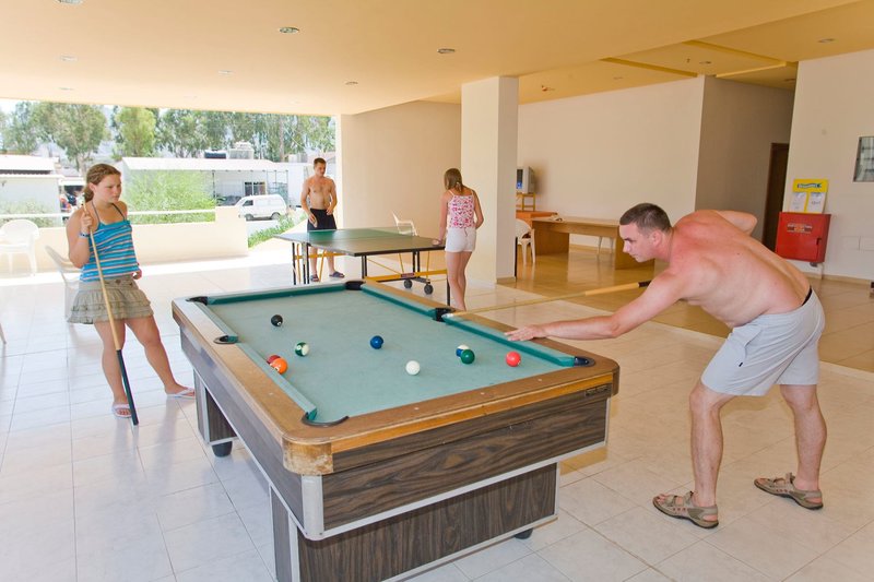 Felszereltség: Ez a rendkívül barátságos, 116 szobás üdülőhely egy főépületből és három melléképületből, egy recepcióból 24 órás recepcióval és előcsarnokkal, két étteremből és egy bárból társalgóval és TV-sarokkal, egy minimarketből, internetsarokból és Wi-Fi-ből áll. A kültéri területen két felnőtt medence és egy külön gyermekmedence, egy napozóterasz ingyenes nyugágyakkal és napernyőkkel, valamint egy medence melletti snackbár található. A nyugágyak és napernyők ingyenesen állnak rendelkezésre a medencénél; a strandon felár ellenében. Parkolás a helyszínen lehetséges.