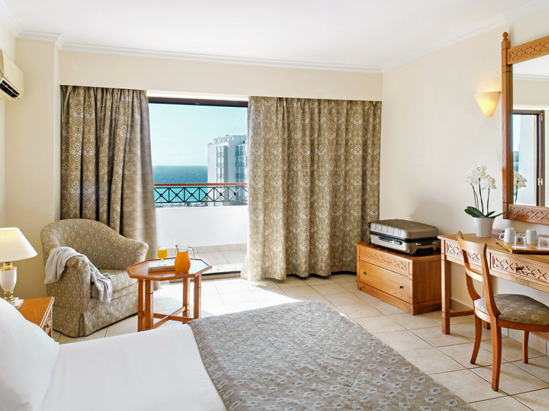 Lage & Umgebung Das Hotel der gehobenen Mittelklasse liegt ca. 100 m vom Kies-/Sandstrand entfernt (Badeschuhe empfehlenswert) und befindet sich im Zentrum von Rhodos-Stadt mit seinen Sehenswürdigkeiten und der stimmungsvollen Altstadt. Vielfältige Einkaufs- und Vergnügungsmöglichkeiten mit Bars und Diskotheken liegen in der direkten Umgebung und sind gut zu Fuß erreichbar. Transferzeit: ca. 20 Minuten.