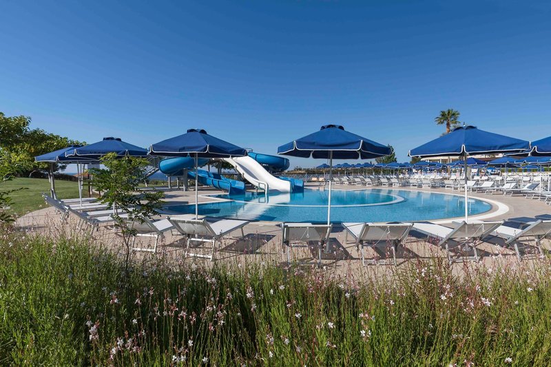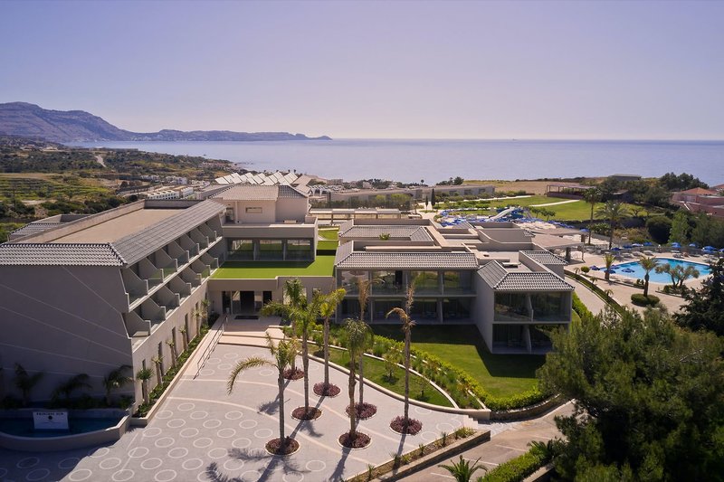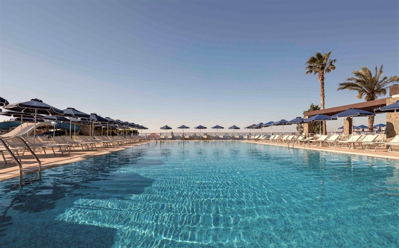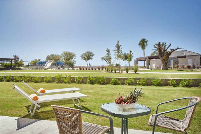 Ausstattung: Die Hotelanlage besitzt 197 Wohneinheiten mit Rezeption, Aufenthaltsraum, TV-Ecke, Restaurant mit Außenterrasse, Griechische Taverne, Bar und Supermarkt. Wi-Fi ist in der gesamten Anlage inklusive (Highspeed gegen Gebühr). In der Außenanlage befinden sich 3 Swimmingpools, einer davon mit Rutschen, mit Sonnenterrasse sowie eine Pool/Snackbar. Liegen und Sonnenschirme sind am Pool und am Strand inklusive.