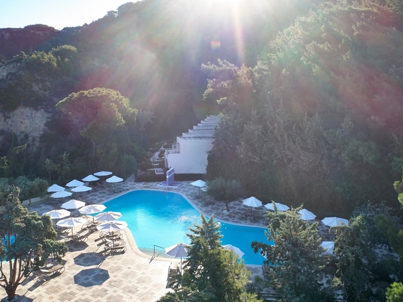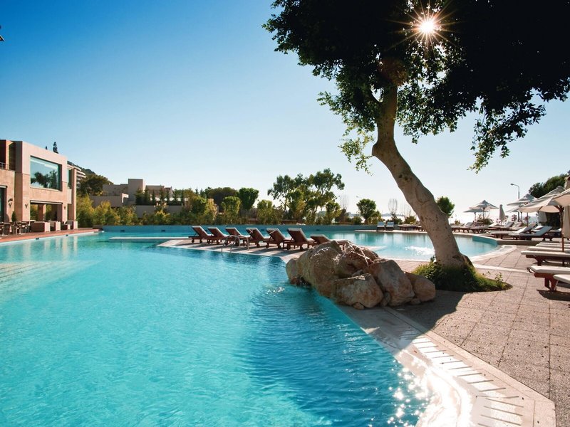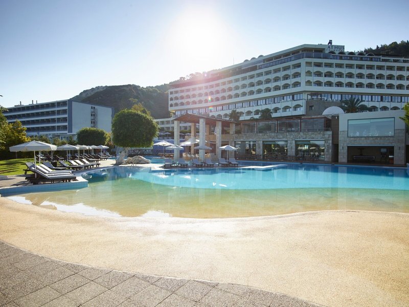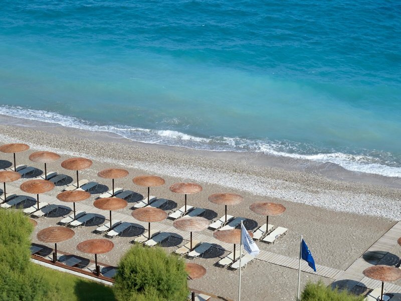 Lage & Umgebung Das exklusive Resort ist nur durch die Straße vom Sand-/Kiesstrand (Badeschuhe empfehlenswert) getrennt und liegt zentral in Ixia mit Geschäften, Restaurants und Unterhaltungsmöglichkeiten. Rhodos-Stadt kann gut mit dem Bus oder Taxi in ca. 15 Minuten Fahrzeit erreicht werden.
