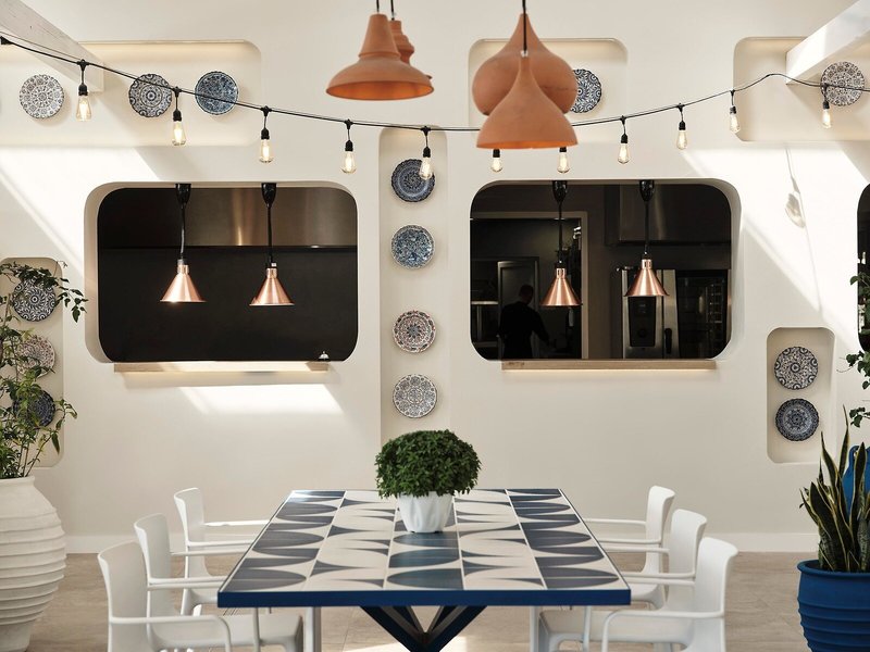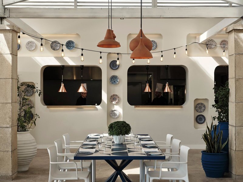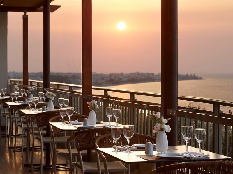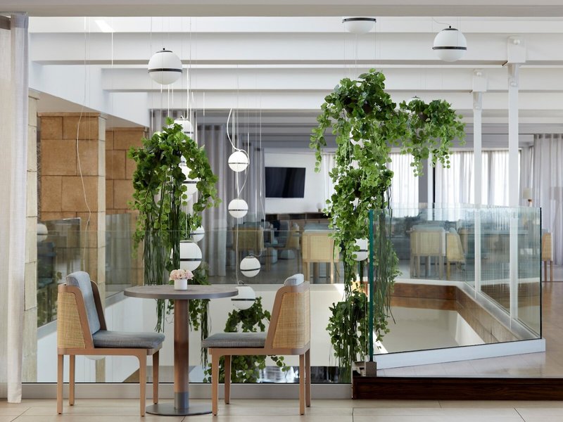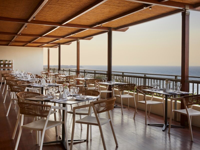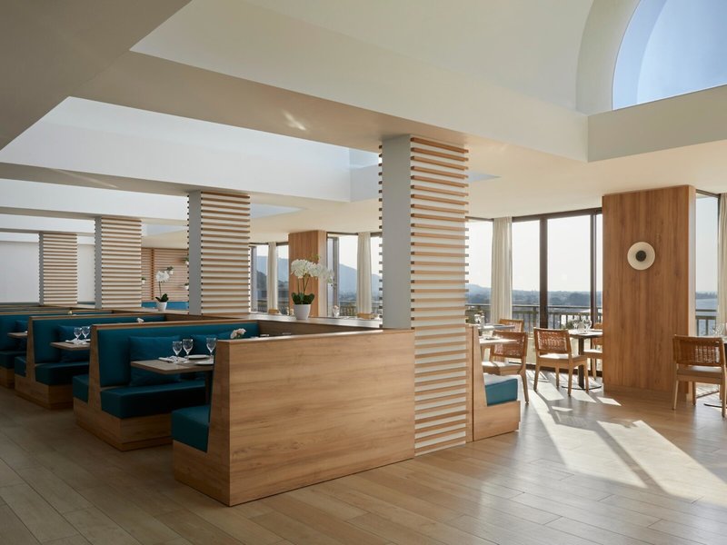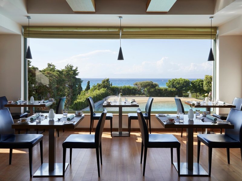 - Hauptrestaurant „Iliades“: Küche: griechisch, international, regional, glutenfreie Gerichte: ohne Gebühr, Anfrage notwendig, saisonale Gerichte, vegetarische Gerichte, vegane Gerichte, Buffet, Showcooking, mit Terrasse, Kinderhochstuhl, angemessene Kleidung erwünscht