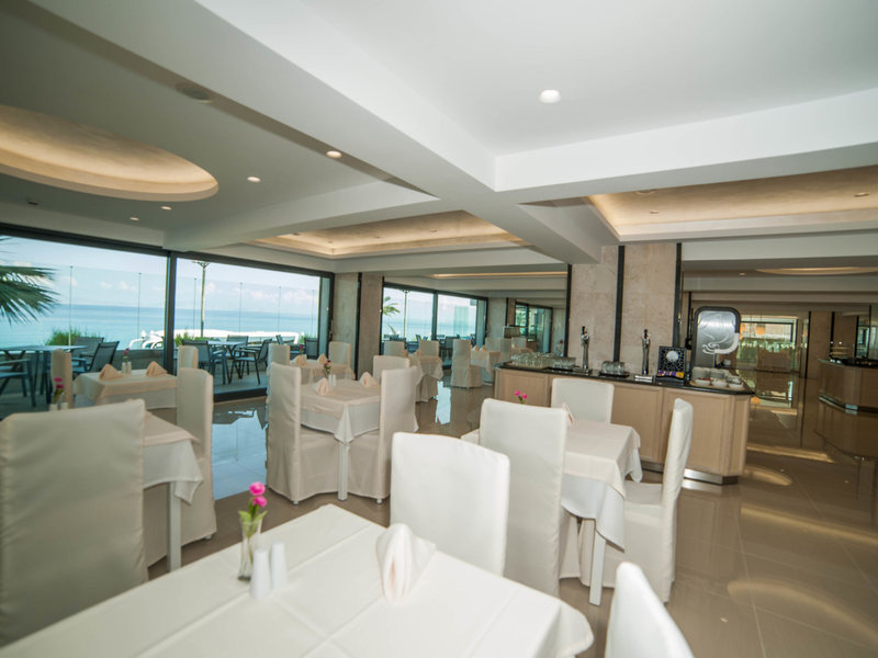 - Étterem Blu étterem: 16 éves kortól, konyha: görög, nemzetközi, regionális, büfé, látványkonyha, kérés és foglalás nem szükséges, nincs díj, az All Inclusive tartalmazza, szezontól függően, naponta 7:00-10:45. és 18:30-21:30, légkondicionált