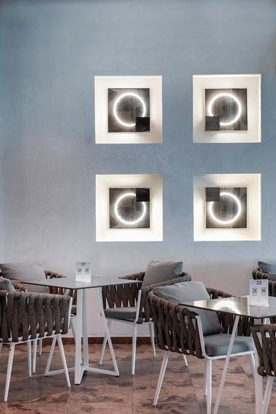 - Restaurant „Restaurant Blu“: ab 16 Jahre, Küche: griechisch, international, regional, Buffet, Showcooking, Anfrage & Reservierung nicht notwendig, ohne Gebühr, bei All Inclusive inklusive, saisonabhängig, täglich 07:00 Uhr - 10:45 Uhr und 18:30 Uhr - 21:30 Uhr, klimatisierbar