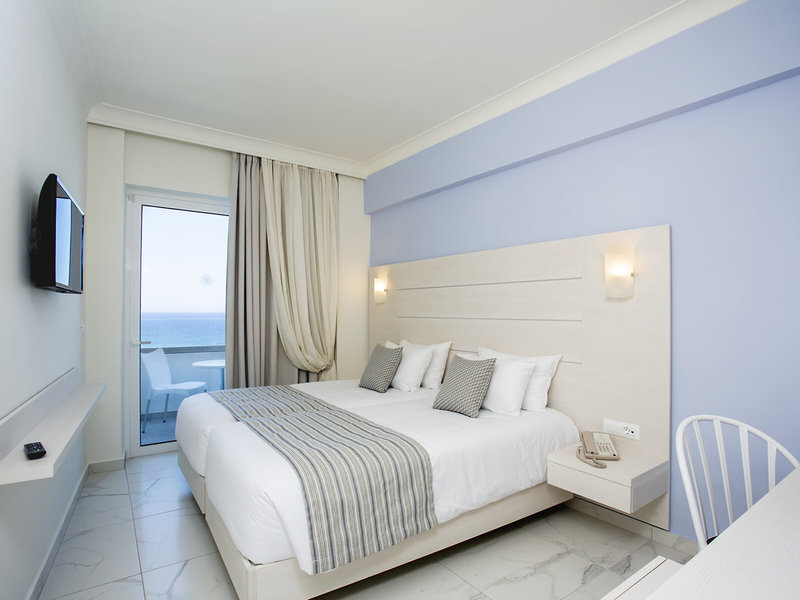 - Double Sea View (DZM1), Doppelzimmer, Nichtraucherzimmer, Mindestalter im Zimmer: 16 Jahre, im Hauptgebäude, Straßenseite, Meerblick, seitlicher Meerblick, ca. 15 - 18 m², letzte Komplettrenovierung 2020, Gesamtanzahl der Räume in diesem Zimmertyp: 1, Aufteilung wie folgt: 1 Schlafzimmer, 2 Einzelbetten (90x190cm), Klimaanlage: ohne Gebühr, saisonabhängig, individuell regelbar, kalt, warm, Fußboden: Fliesenboden, Safe: ohne Gebühr, Kaffee-/Teezubereiter, Minibar: ohne Gebühr, Softdrinks, Wasser, alkoholische Getränke: ohne Gebühr, Minibarauffüllung, Telefon, Internet: WLAN/WiFi: ohne Gebühr, Fernseher: Flatscreen, im Schlafzimmer, deutsches Programm, Sat-TV, Radio, Reinigungsservice: Di. - So., ohne Gebühr, Dusche, WC, Föhn, Kosmetikspiegel, Balkon: mit Sitzgelegenheit