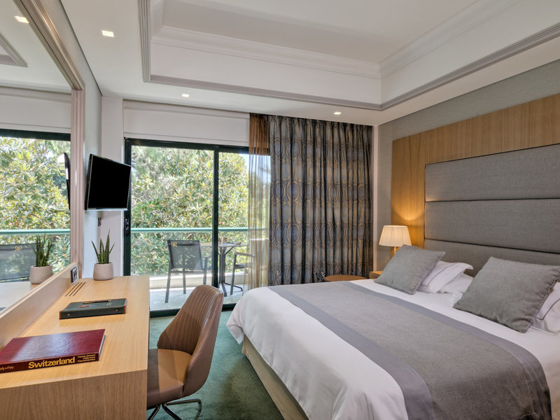 - Premium Deluxe Double Room (DZX4), Doppelzimmer, Nichtraucherzimmer, im Hauptgebäude, Parkseite, Poolblick, Gartenblick, ca. 28 - 28 m², letzte Komplettrenovierung 2025, Gesamtanzahl der Räume in diesem Zimmertyp: 1, Aufteilung wie folgt: 1 Schlafzimmer, 1 Doppelbett, 1 King Size Bett, Babybett, Klimaanlage: individuell regelbar, kalt, Fußboden: Fliesenboden, Teppichboden, Parkett, Safe, Schreibtisch, Minibar: Softdrinks, Wasser, alkoholische Getränke, Snacks, Minibarauffüllung, Telefon, Internet: WLAN/WiFi, Fernseher: Flatscreen, im Schlafzimmer, Sat-TV, Kabel-TV, DVD-Player, Roomservice, Reinigungsservice, Dusche, Regendusche, WC, Bademantel, Slipper, Föhn, Kosmetikspiegel, Balkon: mit Liegestühlen