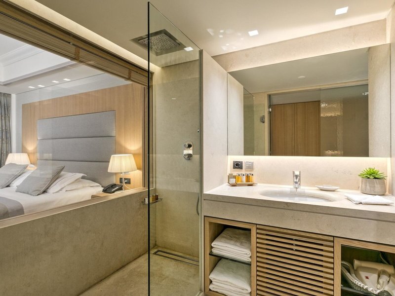 - Superior Double Room (DZX3), Doppelzimmer, Nichtraucherzimmer, im Hauptgebäude, Blick auf Αrchaeological area, ca. 24 - 24 m², letzte Komplettrenovierung 2025, Gesamtanzahl der Räume in diesem Zimmertyp: 1, Aufteilung wie folgt: 1 Schlafzimmer, 1 Doppelbett, 1 Queen Size Bett, Babybett, Klimaanlage: individuell regelbar, kalt, Fußboden: Fliesenboden, Teppichboden, Parkett, Safe, Schreibtisch, Minibar: Softdrinks, Wasser, alkoholische Getränke, Snacks, Minibarauffüllung, Telefon, Internet: WLAN/WiFi, Fernseher: Flatscreen, im Schlafzimmer, Sat-TV, Kabel-TV, DVD-Player, Roomservice, Reinigungsservice, Dusche, Regendusche, WC, Bademantel, Slipper, Föhn, Kosmetikspiegel, Balkon: mit Liegestühlen