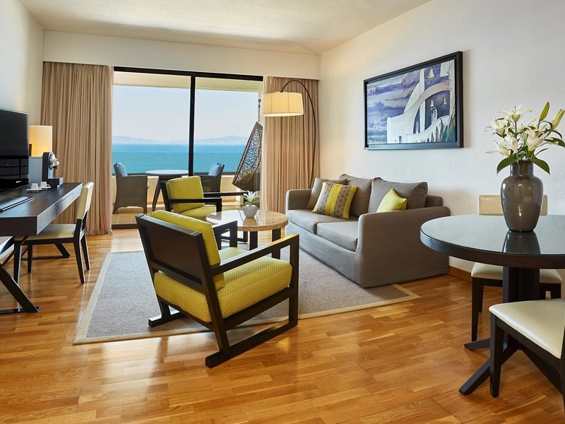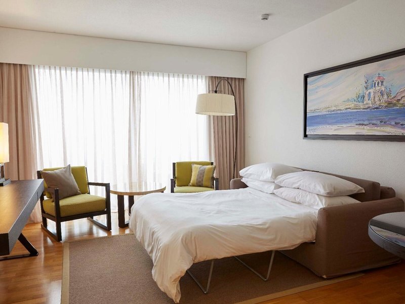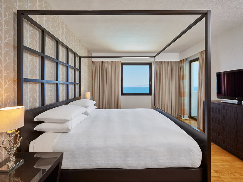 - Aegean suite sea view (SUM1), Suite, Nichtraucherzimmer, im Hauptgebäude, Meerblick, ca. 65 m², letzte Komplettrenovierung 2011, letzte Teilrenovierung 2021, Gesamtanzahl der Räume in diesem Zimmertyp: 2, Aufteilung wie folgt: bestehend aus 2 Zimmern, optisch getrennt durch Schiebetür, 1 Doppelbett, 1 Schlafsofa, Babybett: ohne Gebühr, Klimaanlage: ohne Gebühr, zentral gesteuert, Fußboden: Parkett, Safe: ohne Gebühr, Sofa, Schreibtisch, Bügeleisen, Bügelbrett, Kühlschrank: ohne Gebühr, Nespressomaschine, Kaffee-/Teezubereiter, Wasserkocher, Esstisch, Telefon, Internet: WLAN/WiFi: ohne Gebühr, Fernseher: Flatscreen, im Wohnbereich, im Schlafzimmer, deutsches Programm, Sat-TV, Radio, Roomservice: gegen Gebühr, Reinigungsservice, Dusche, WC, Bademantel, Slipper, Föhn, Kosmetikspiegel, Balkon: mit Sitzgelegenheit