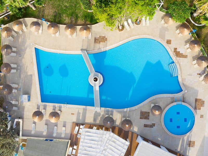 Sport & Fitness: Neben Innen- und Außenpools gibt es einen Kinderbadebereich. Auf der Sonnenterrasse sind Liegestühle und Schirme vorhanden. An der Poolbar erwarten die Gäste diverse Erfrischungsgetränke. Sportliche Abwechslung bieten viele verschiedene Aktivitäten, die in dem Hotel angeboten werden, wie z.B. Radfahren/Mountainbiking, Tennis, Boccia, Beachvolleyball und Basketball. Zum Strand- und Wassersportangebot gehört Windsurfen. Den Gästen steht im Haus mit einem Fitnessstudio, Tischtennis, Billard, Gymnastik und Aerobic ein breites Spektrum an Indoor-Sportarten zur Auswahl. Im Wellnessbereich stehen Spa und Massage-Anwendungen zur Verfügung. Kinder werden im Miniclub liebevoll betreut.