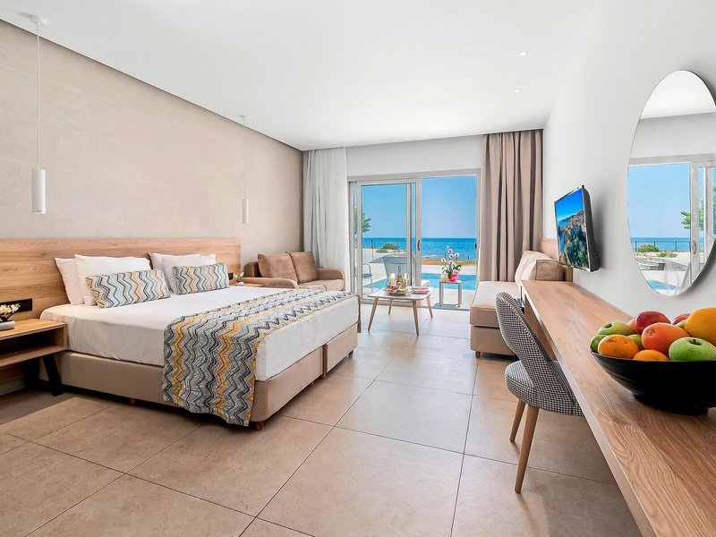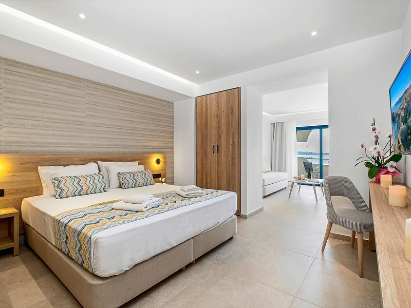 So wohnen Sie: Für angenehmes Raumklima in den Zimmern sorgt eine Klimaanlage. Die Gäste können den Meerblick von Balkon oder Terrasse genießen. Die Zimmer verfügen über ein Doppelbett oder ein Sofabett. Es sind separate Schlafzimmer vorhanden. Zustellbetten können angefordert werden. Außerdem sind ein Safe und eine Minibar verfügbar. Ein Kühlschrank und ein Minikühlschrank zählen ebenfalls zur Standardeinrichtung. Besten Urlaubskomfort bieten ein Telefon, Sat-TV und WiFi (gegen Gebühr). Im Badezimmer, mit einer Dusche und einer Badewanne ausgestattet, stehen für die Gäste ein Haartrockner und ein Telefon bereit. Für besonderen Komfort in den Badezimmern sorgen Kosmetikartikel. Buchbar sind rollstuhlgerechte Zimmer. Die Unterbringung bietet Raucherzimmer.