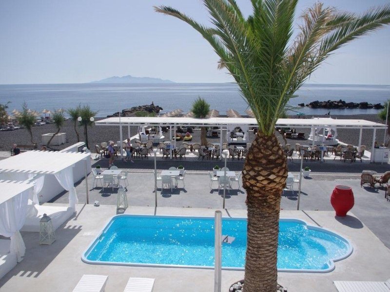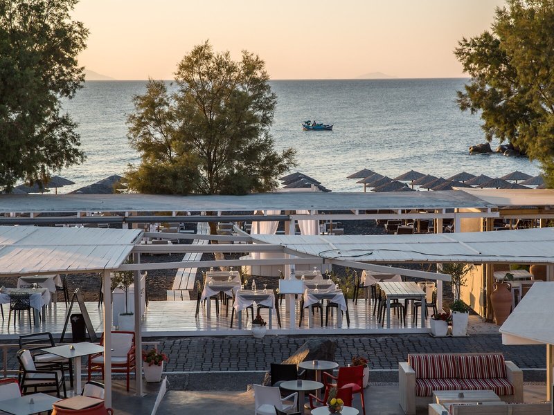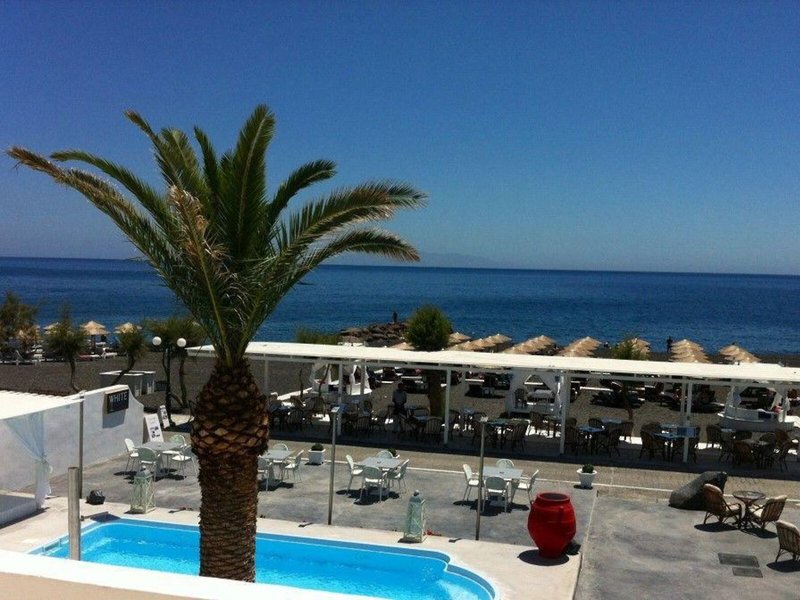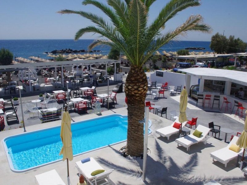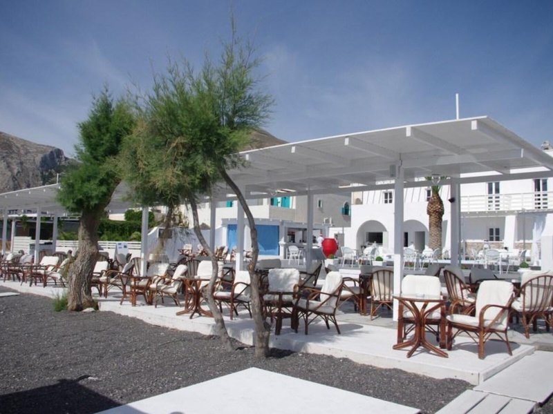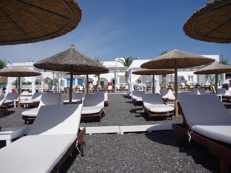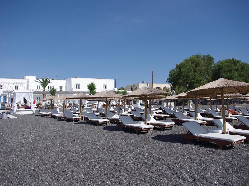 Lage & Umgebung Dieses Hotel liegt in Kamari auf der Insel Santorin, unweit vom schwarzen Sandstrand und von Tavernen, Bars, kleinen Supermärkten, Reisegeschäften und Kinos.