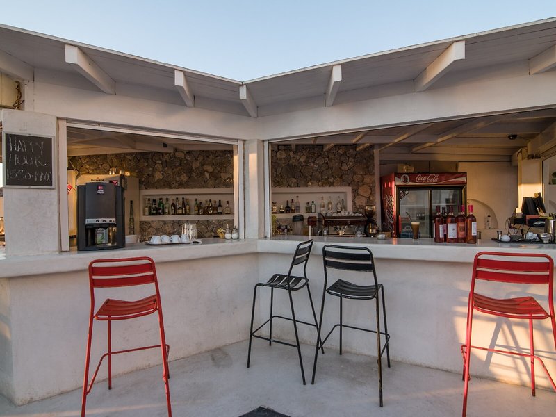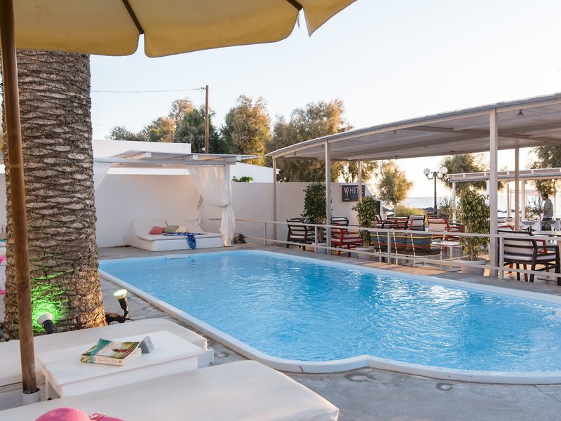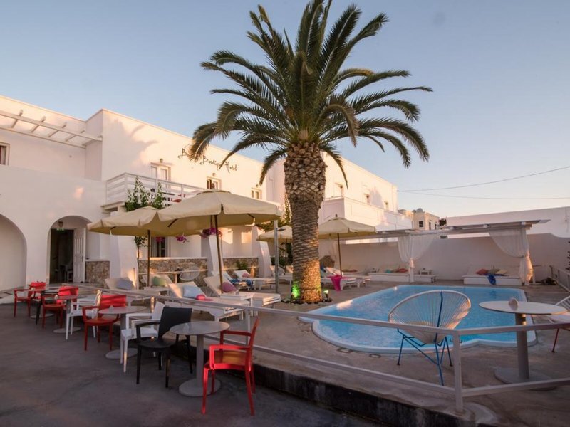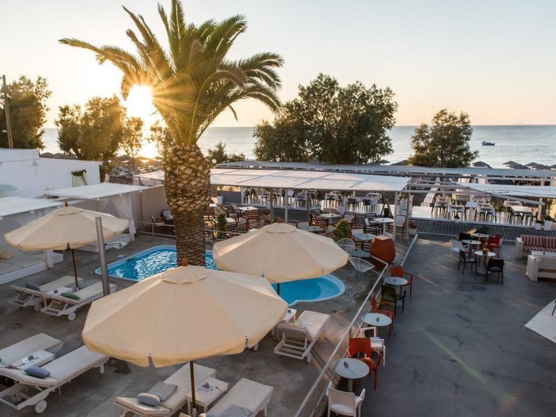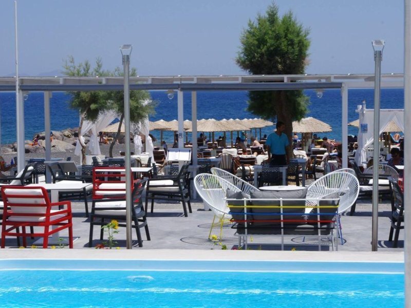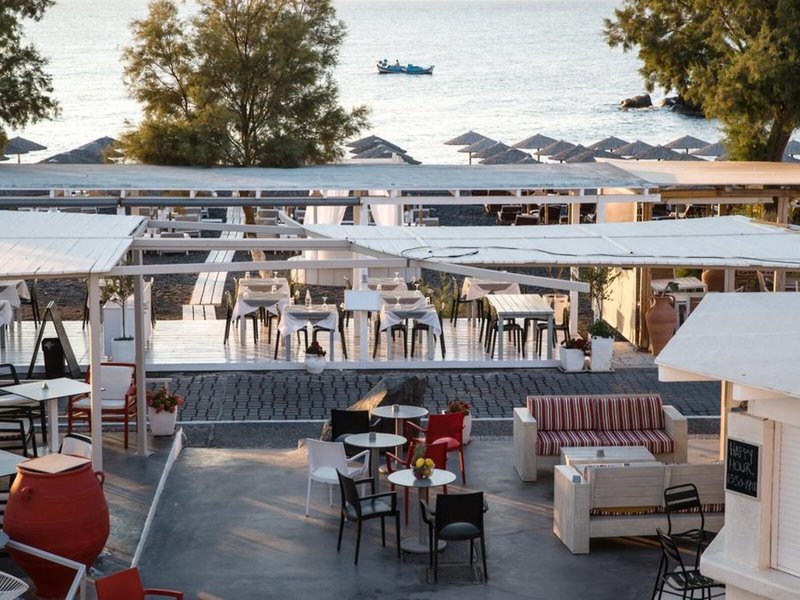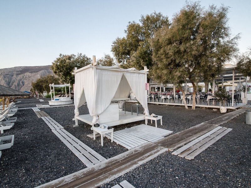 Lage & Umgebung Dieses Hotel liegt in Kamari auf der Insel Santorin, unweit vom schwarzen Sandstrand und von Tavernen, Bars, kleinen Supermärkten, Reisegeschäften und Kinos.