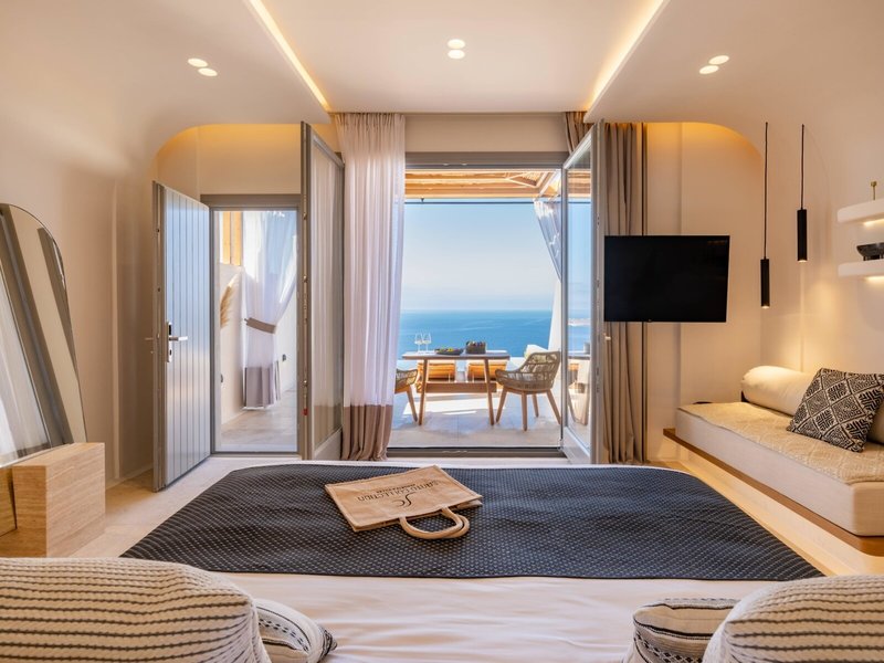 - Unwind Sunset Sea View Junior Suite with Pool (JSM2), Suite, Nichtraucherzimmer, Mindestalter im Zimmer: 12 Jahre, im Nebengebäude, Meerblick, Blick auf Sunset & Sea View, ca. 35 m², Gesamtanzahl der Räume in diesem Zimmertyp: 1, Aufteilung wie folgt: kombiniertes Wohn-/Schlafzimmer, 1 King Size Bett, 1 Schlafsofa, Klimaanlage: ohne Gebühr, individuell regelbar, kalt, warm, Safe, Sofa, Bügeleisen, Bügelbrett, Nespressomaschine, Kaffee-/Teezubereiter, Wasserkocher, Minibar: gegen Gebühr, Softdrinks, Wasser, alkoholische Getränke, Snacks, Minibarauffüllung, Telefon, Internet: WLAN/WiFi: ohne Gebühr, Fernseher: Flatscreen, deutsches Programm, Deutsche Welle, Sat-TV, Kabel-TV, Roomservice: gegen Gebühr, Reinigungsservice: täglich, ohne Gebühr, Tageszeitung, Regendusche, Bademantel: ohne Gebühr, Slipper: ohne Gebühr, Föhn, Kosmetikspiegel, Terrasse: mit Liegestühlen, mit Liegen, mit Sitzgelegenheit, mit Private Pool