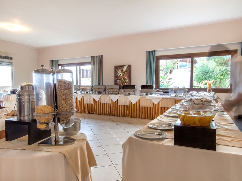 Essen & Trinken: Die gastronomischen Einrichtungen umfassen ein Restaurant, ein Café und eine Bar. Das Haus bietet als buchbare Verpflegungsleistungen Halbpension und All-Inclusive. Angeboten werden Frühstück, Mittagessen und Abendessen. Diätgerichte und Kindermenüs werden auf Wunsch zubereitet. Darüber hinaus stellt die Unterbringung spezielle Verpflegungsangebote bereit. Das Hotel führt ein Sortiment alkoholischer und alkoholfreier Getränke.