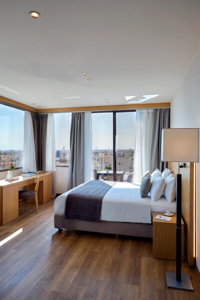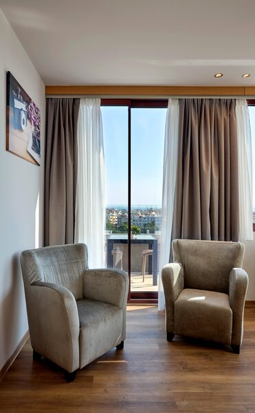 szálloda tíz percre található a városközponttól, szemben Szaloniki legfontosabb művészeti központjával, a Moni Lazaristonnal. Közel van minden autópálya, amely összeköti Szalonikit Görögország és a Balkán többi részével, és gyors kapcsolatot kínál a vasútállomáshoz és a repülőtérhez. A Helex nemzetközi kiállítási központ 7 km-re található.