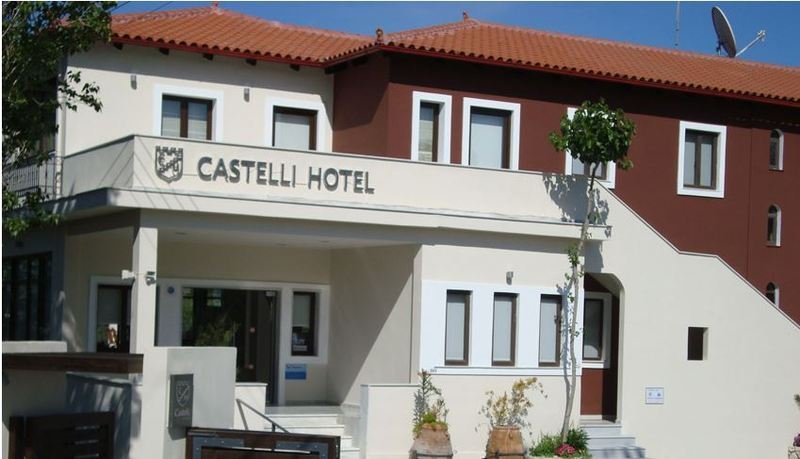 Castelli egy hagyományos és hangulatos családi szálloda 54 szobával. A komplexum felszereltsége: recepció, lobby bár (18:00-02:00) műholdas TV-sarokkal és verandával, Internet sarok (térítés ellenében), Wi-Fi a recepción (beleértve), görög specialitásokat kínáló étterem a este (térítés ellenében) és egy kis könyvtár. Kint található egy édesvizű medence és jakuzzi, valamint a medence melletti snack bár és egy medence melletti étterem (görög és mediterrán). A strandszékek és napernyők a medencénél, a strandon térítés ellenében biztosítottak.