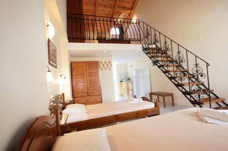 Die Studios sind ausgestattet mit Bad oder Dusche/WC, Föhn, Klimaanlage (gegen Gebühr), Telefon, Sat.-TV, Kitchenette, Kühlschrank und Balkon oder Terrasse. Die Maisonette-Zimmer bieten bei gleicher Ausstattung Schlafmöglichkeiten für bis zu 4 Personen. Die Appartements verfügen über einen separaten Schlafraum.