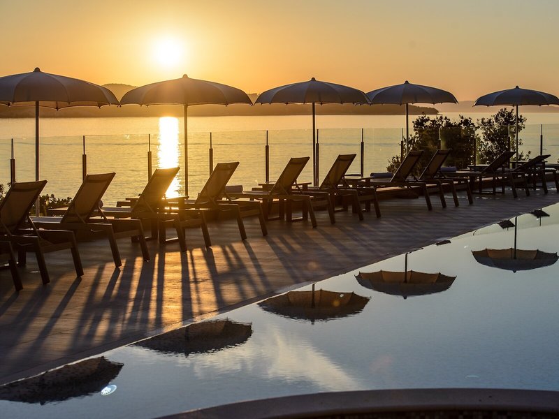 - Pools:Kinderbecken, Indoor Pool, Outdoor Pool, Sonnenschirme am Pool, Liegen am Pool