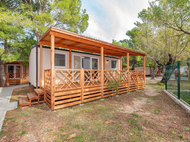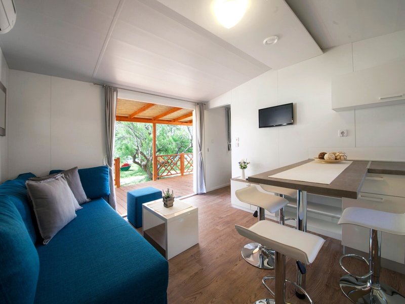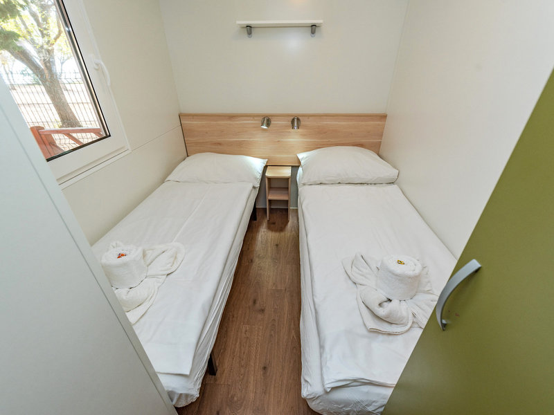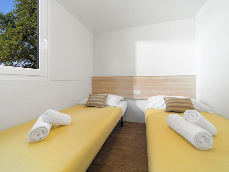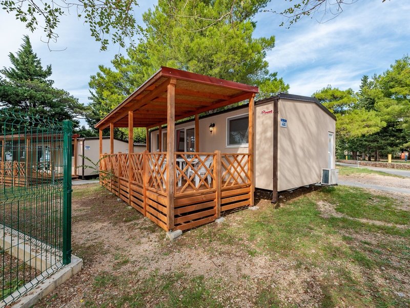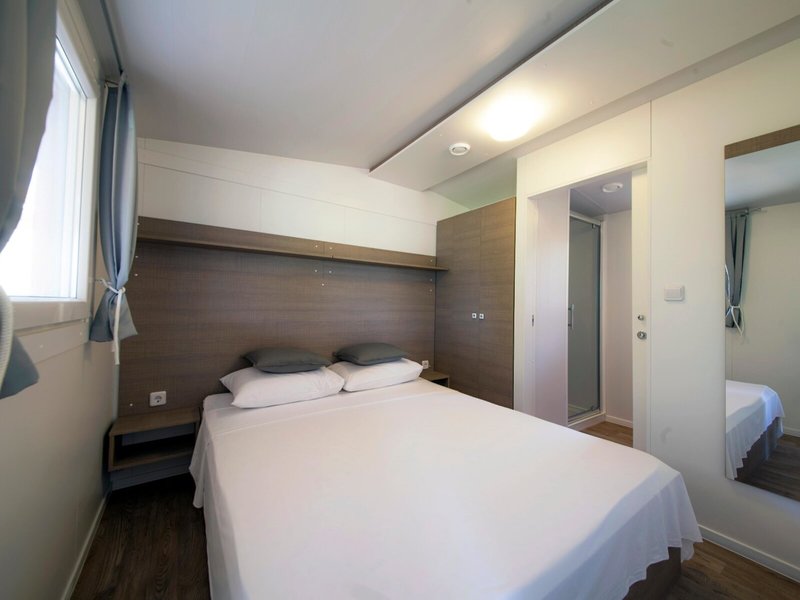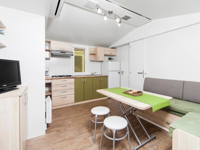 - Mobile home 4+2 Superior (MHX2), Mobile Home, ca. 30 m², Wohnzimmer, 2 Einzelbetten (80x190cm), 1 Queen Size Bett (140x200cm), 1 Schlafsofa (130x190cm), Babybett: Barzahlung, pro Tag ca. 6 EUR, Reservierung notwendig, Klimaanlage: individuell regelbar, Fußboden: Parkett, Sofa, Kochnische, Telefon, Internet: WLAN/WiFi: ohne Gebühr, Fernseher: Flatscreen, deutsches Programm, Sat-TV, Reinigungsservice: ohne Gebühr, bei All Inclusive inklusive, Dusche, WC, 2 Bäder, Föhn, Terrasse: mit Sitzgelegenheit