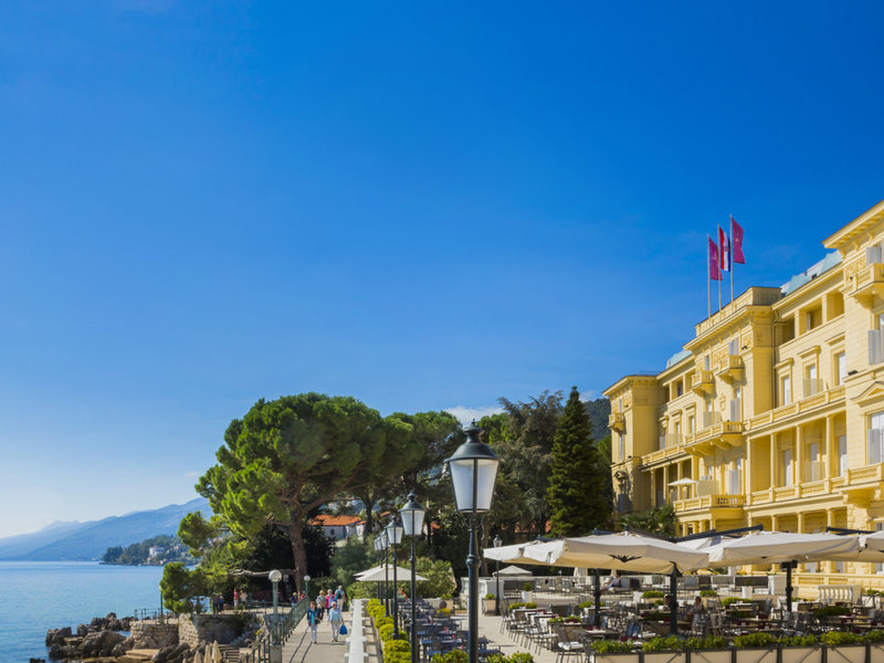 Lage & Umgebung Direkt an der Küstenpromenade in Opatija gelegen. Der hoteleigene Strand befindet sich direkt am Hotel. Der Beach-/Nachtclub Angolina bietet Nachtschwärmern (in unmittelbarer Nähe) vielseitige Unterhaltung bis teils in die Morgenstunden (Öffnungszeiten variieren saisonbedingt). Die lebhafte Restaurantterrasse vor dem Club ist bis Mitternacht geöffnet.