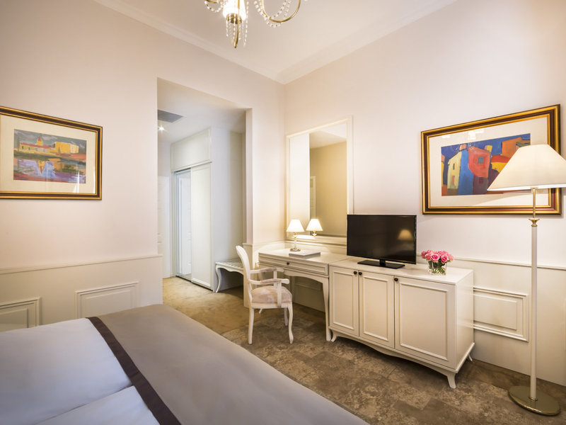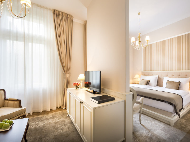 - Superior szoba kétszemélyes ággyal vagy 2 külön ággyal, utca felőli oldalon (DZX1), a főépületben, utca felőli oldalon, városra néző, kb. 23 - 32 m², 1 franciaágy (200 x 200 cm), központilag szabályozható klíma, központi fűtés, szőnyegpadló, széf, íróasztal, minibár (térítés ellenében), telefon, ingyenes Wi-Fi, TV, szobaszerviz (térítés ellenében), fürdőkád, papucs, hajszárító és kozmetikai tükör