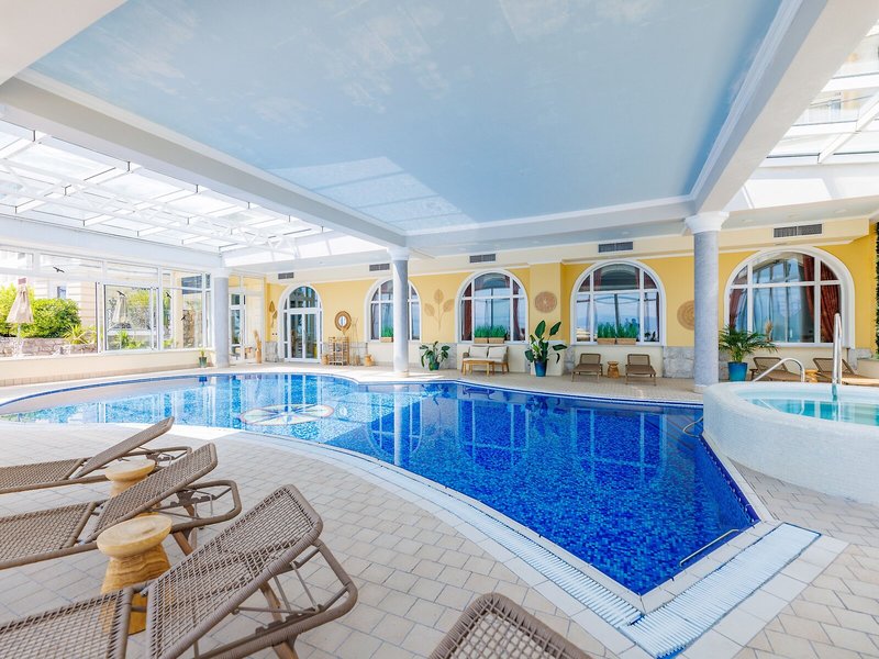 - Pools:Beheizter Außenpool, Indoor Pool, Outdoor Pool, Sonnenschirme am Pool, Liegen am Pool