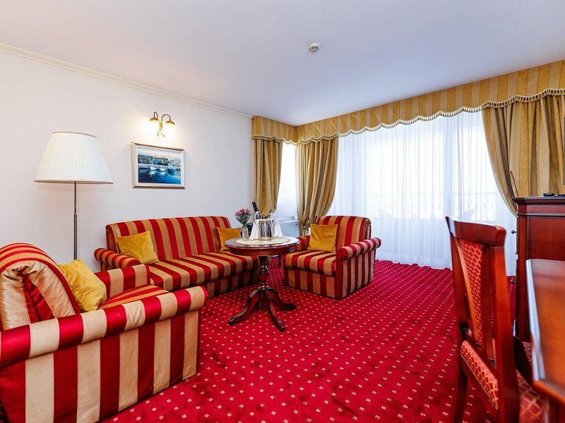 Sport & Fitness: A kellemesen melegített víz a beltéri és kültéri medencékben egészséges fürdőzési élményt biztosít. A napozóteraszon napozóágyak és napernyők állnak rendelkezésre. A fürdő területén található pezsgőfürdő kellemes kikapcsolódást ígér. Számos lehetőség áll rendelkezésre, köztük gyógyfürdő, szauna, szépségszalon és masszázskezelések. A kaszinó szórakozást és szórakozást kínál.