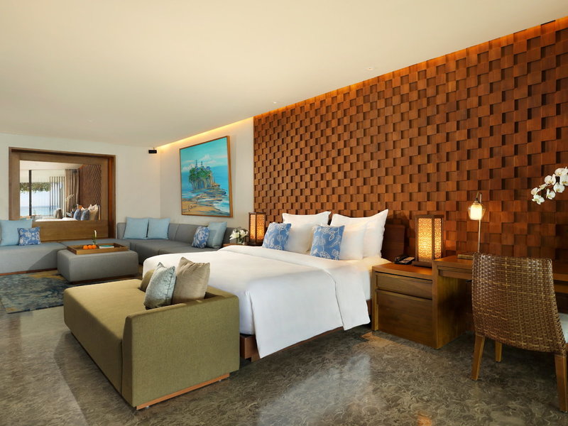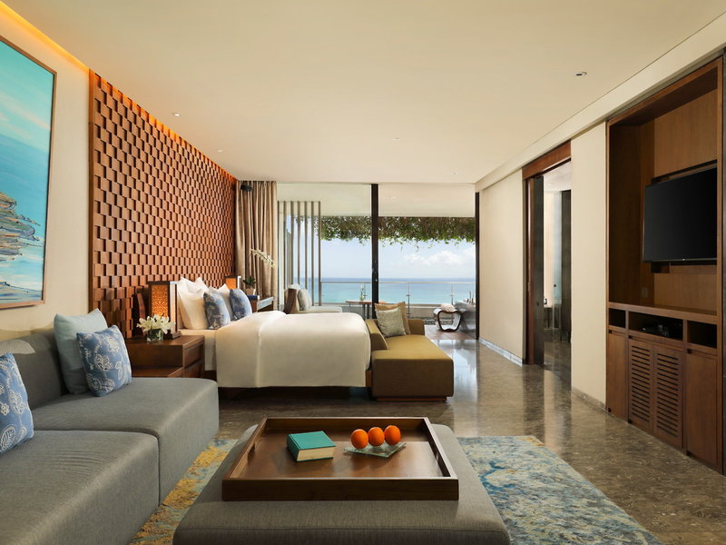 - Ocean Front Pool Suite (SUF2), Suite, Nichtraucherzimmer, im Nebengebäude, Meerseite, Meerblick, Poolblick, Blick auf Ocean Front View, ca. 100 m², letzte Teilrenovierung 2019, Gesamtanzahl der Räume in diesem Zimmertyp: 1, Aufteilung wie folgt: kombiniertes Wohn-/Schlafzimmer, 1 King Size Bett (200x200cm), 1 Schlafsofa (100x200cm), Babybett: ohne Gebühr, Klimaanlage: ohne Gebühr, Januar - Dezember, individuell regelbar, kalt, Fußboden: Fliesenboden, Teppichboden, Safe: ohne Gebühr, Sofa, Schreibtisch, Kühlschrank, Nespressomaschine, Kaffee-/Teezubereiter, Wasserkocher, Minibar: gegen Gebühr, Softdrinks: gegen Gebühr, alkoholische Getränke: gegen Gebühr, Snacks: gegen Gebühr, Telefon, Internet: WLAN/WiFi: ohne Gebühr, Fernseher: Flatscreen, im Schlafzimmer, deutsches Programm, Deutsche Welle, Kabel-TV, Roomservice: täglich 24 Stunden, gegen Gebühr, Reinigungsservice: täglich, ohne Gebühr, Dusche, Regendusche, WC, Bademantel: ohne Gebühr, Slipper: ohne Gebühr, Bad durch Glaswand getrennt, Föhn, Kosmetikspiegel, Balkon: mit Whirlpool, mit Sitzgelegenheit, mit Plunge Pool
