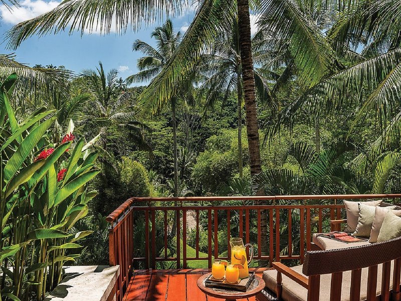 - River View Two Bedroom Villa (VIX6), Villa, Flussseite, Flussblick, Blick auf Ayung River and rice field, Gesamtanzahl der Räume in diesem Zimmertyp: 2, Aufteilung wie folgt: Wohnzimmer, 2 Schlafzimmer, 2 Queen Size Betten, 1 King Size Bett, Moskitonetz, Klimaanlage: ohne Gebühr, individuell regelbar, Safe: ohne Gebühr, Deckenventilator, Sofa, Schreibtisch, Kochnische, Kühlschrank: ohne Gebühr, Kaffeemaschine, Wasserkocher, Minibar: gegen Gebühr, Telefon, Internet: WLAN/WiFi: ohne Gebühr, Breitband-Internet/DSL: ohne Gebühr, Fernseher: Flatscreen, Roomservice: täglich 24 Stunden, gegen Gebühr, Reinigungsservice: täglich, ohne Gebühr, Tageszeitung: ohne Gebühr, Sprachen: englisch, Dusche, Außendusche, Badewanne, WC, Bademantel: ohne Gebühr, Slipper: ohne Gebühr, Föhn, Balkon oder Terrasse: mit Liegestühlen, mit Plunge Pool