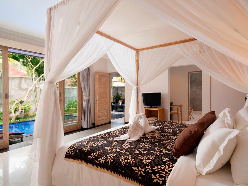 Lage & Umgebung Das Hotel liegt im Süden von Ubud, rund 90 Fahrminuten vom Flughafen entfernt. Es sind 40 min zum Sanur Beach und dem Touristenviertel, bis zum weltberühmten Kuta Beach sind es etwa 70 Fahrminuten.