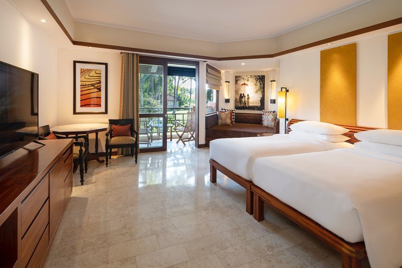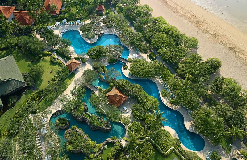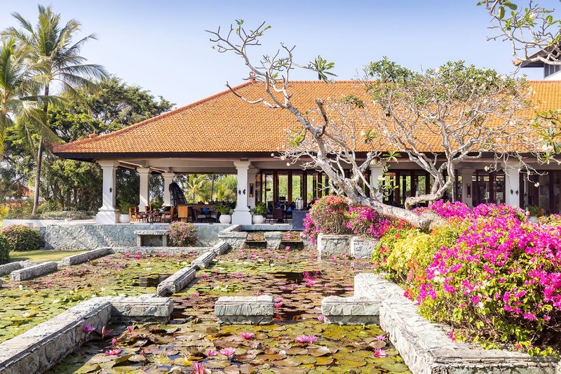 Létesítmények: A kiterjedt üdülőhely 636 fényűző szobát és lakosztályt kínál több kétszintes épületben, amelyek buja trópusi kertek és lagúnák között helyezkednek el. A kertek a nyugalom oázisa, árnyas pálmafákkal, színes virágokkal és csordogáló vízesésekkel tarkítva. A komplexumban kanyargós ösvények vezetnek át, rejtett ülőhelyek és nyugodt tavak mellett. A fogadóterem nyitott dizájnjával és stílusos berendezésével nyűgöz le, míg számos butik és egy exkluzív fürdőrészleg további kényelmet biztosít. Kulináris csúcspontok öt étteremben várják a vendégeket, amelyek nemzetközi, ázsiai és balinéz ételeket kínálnak. Számos bár és kávézó csábítja a pihenésre. A tágas medencekomplexum öt úszómedencét foglal magában, köztük egy lagúna- és egy gyermekmedencét, melyeket csúszdák és vízesések egészítenek ki. Mindent úgy terveztek, hogy a vendégek nyugodt és fényűző nyaralási élményt nyújtsanak.