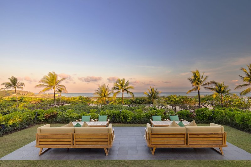 Ausstattung: Das weitläufige Resort bietet 636 luxuriöse Zimmer und Suiten, verteilt auf mehrere 2-stöckige Gebäude, die inmitten üppiger tropischer Gärten und Lagunen liegen. Die Gärten sind eine Oase der Ruhe, durchzogen von schattenspendenden Palmen, bunten Blumen und plätschernden Wasserfällen. Geschwungene Pfade führen durch die Anlage, vorbei an versteckten Sitzgelegenheiten und ruhigen Teichen. Die Empfangshalle beeindruckt durch offene Bauweise und stilvolle Einrichtung, während zahlreiche Boutiquen und ein exklusiver Spa-Bereich für zusätzlichen Komfort sorgen. Kulinarische Highlights erwarten die Gäste in fünf Restaurants, die internationale, asiatische und balinesische Küche anbieten. Mehrere Bars und Cafés laden zum Verweilen ein. Die großzügige Poollandschaft umfasst fünf Swimmingpools, darunter ein Lagunenpool und ein Kinderpool, ergänzt durch Wasserrutschen und Wasserfälle. Alles ist darauf ausgelegt, den Gästen ein entspanntes und luxuriöses Urlaubserlebnis zu bieten.