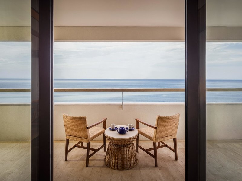 - Executive Suite Ocean (DZM3), Doppelzimmer, Nichtraucherzimmer, Meerseite, Gartenseite, Meerblick, Gartenblick, ca. 90 m², letzte Komplettrenovierung 2024, letzte Teilrenovierung 2025, Gesamtanzahl der Räume in diesem Zimmertyp: 1, Aufteilung wie folgt: kombiniertes Wohn-/Schlafzimmer, Babybett: ohne Gebühr, Klimaanlage: ohne Gebühr, Heizung: individuell regelbar, Fußboden: Teppichboden, Parkett, Safe: ohne Gebühr, Sofa, Schreibtisch, Bügeleisen, Bügelbrett, Espressomaschine, Nespressomaschine, Kaffee-/Teezubereiter, Wasserkocher, Minibar: ohne Gebühr, Softdrinks: ohne Gebühr, Wasser: ohne Gebühr, Snacks, Minibarauffüllung: mehrmals pro Woche, Telefon, Internet: WLAN/WiFi: ohne Gebühr, Fernseher: Flatscreen, im Schlafzimmer, deutsches Programm, Sat-TV, Kabel-TV, Roomservice: täglich, gegen Gebühr, Reinigungsservice: täglich, ohne Gebühr, Dusche, Regendusche, Badewanne, WC, separates WC, Bademantel: ohne Gebühr, Slipper: ohne Gebühr, Föhn, Balkon: mit Sitzgelegenheit