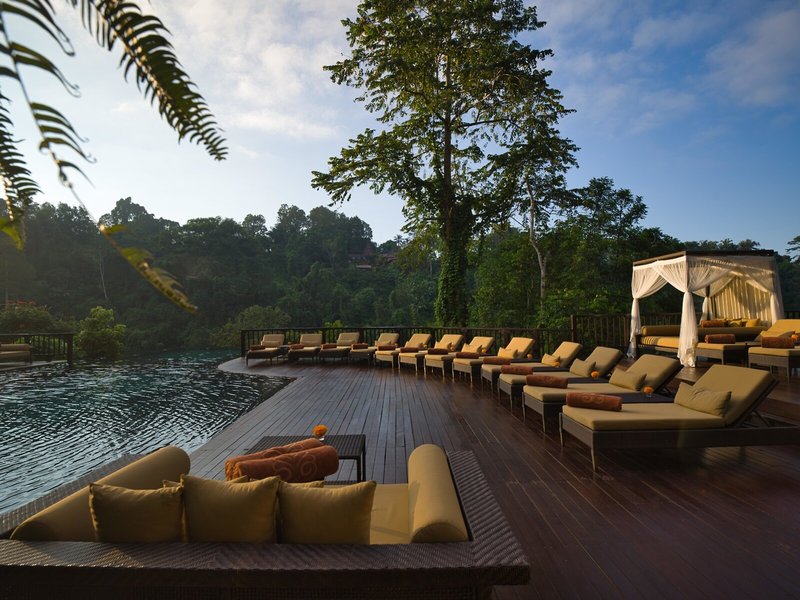 - One Bedroom Riverside Villa (VIX1), Villa, Poolblick, Blick auf Ayung River Tal und Resortgarten, ca. 100 m², Gesamtanzahl der Räume in diesem Zimmertyp: 1, Aufteilung wie folgt: kombiniertes Wohn-/Schlafzimmer, 1 King Size Bett (200x200cm), Moskitonetz, Klimaanlage: ohne Gebühr, Fußboden: Parkett, Safe: ohne Gebühr, Sofa, Schreibtisch, Kaffee-/Teezubereiter, Minibar: gegen Gebühr, Telefon, Internet: WLAN/WiFi: ohne Gebühr, Fernseher: Kabel-TV, Roomservice: täglich 07:00 Uhr - 23:00 Uhr, gegen Gebühr, Reinigungsservice: täglich, ohne Gebühr, Dusche, Badewanne, WC, Bademantel: ohne Gebühr, Slipper: ohne Gebühr, Föhn, Kosmetikspiegel, Balkon oder Terrasse: mit Liegestühlen, mit Private Pool