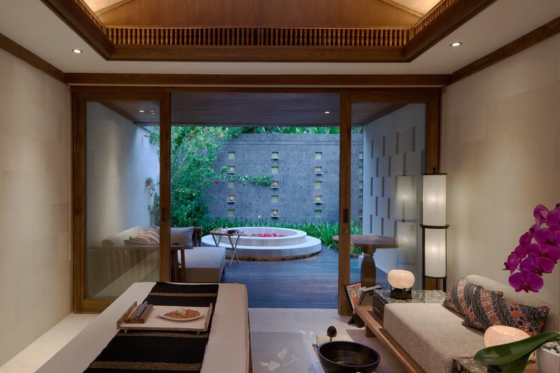 Hinweis: Auf Bali können Waschbecken oder auch Badewannen/Whirlpools offen ohne räumliche Trennung im allgemeinen Wohnbereich des Hotelzimmers integriert sein.