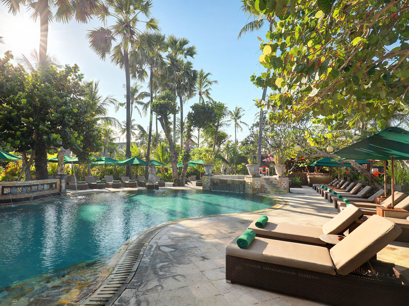 Lage & Umgebung Nur durch eine Uferpromenade (kein Durchgangsverkehr) vom kilometerlangen, breiten Sandstrand getrennt. Restaurants, Pubs, Bars und Geschäfte befinden sich in der Nähe. Das „pulsierende Herz" von Kuta ist zu Fuß oder per Hotelbus (2x täglich inklusive) nach ca. 2 km zu erreichen. Zum Flughafen sind es ca. 5 km. Transferzeit: ca. 20 Minuten.