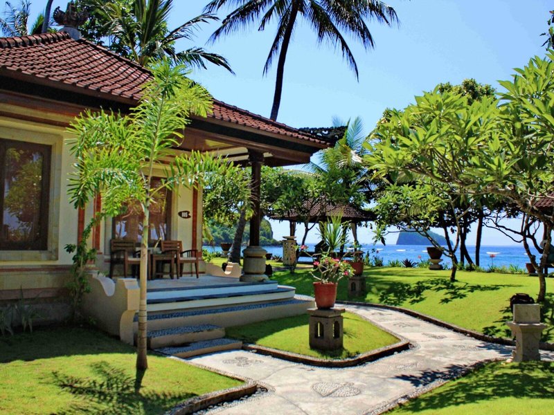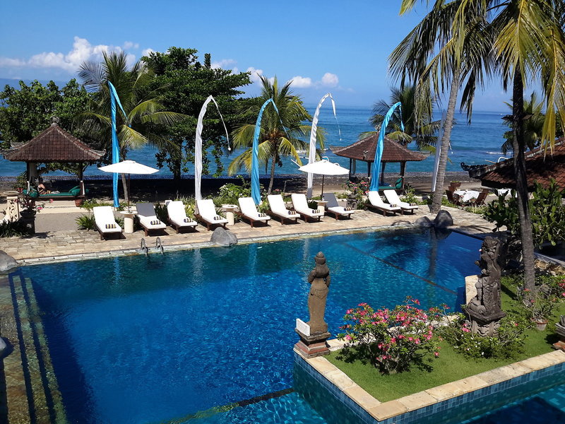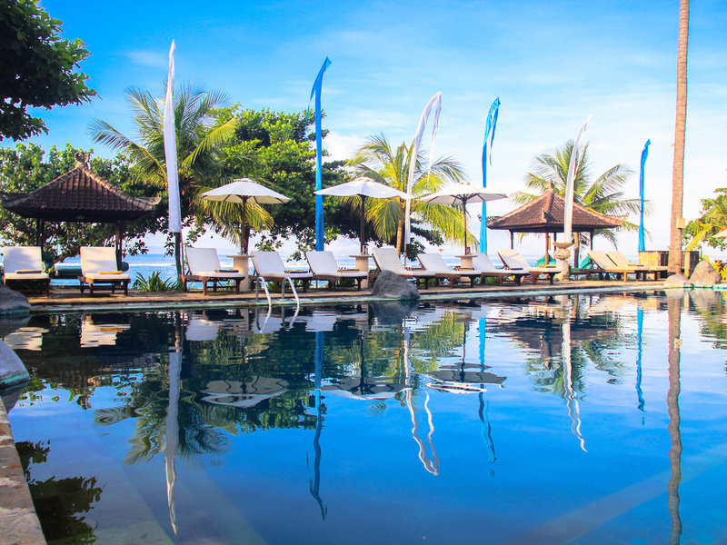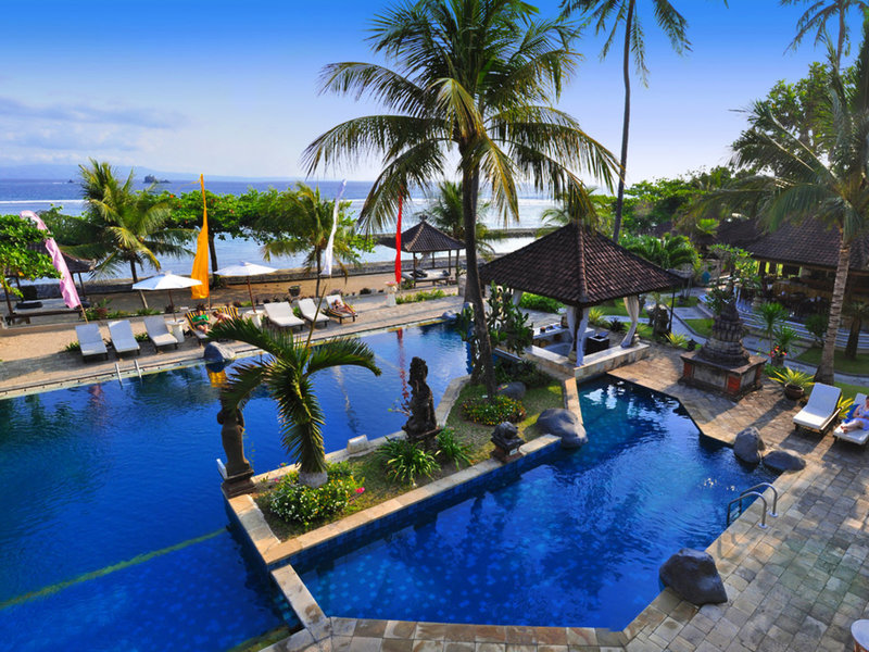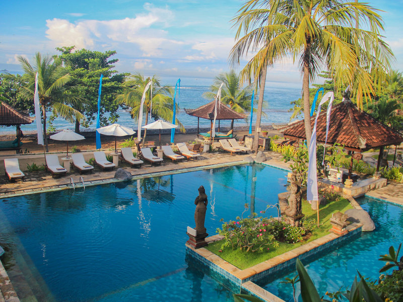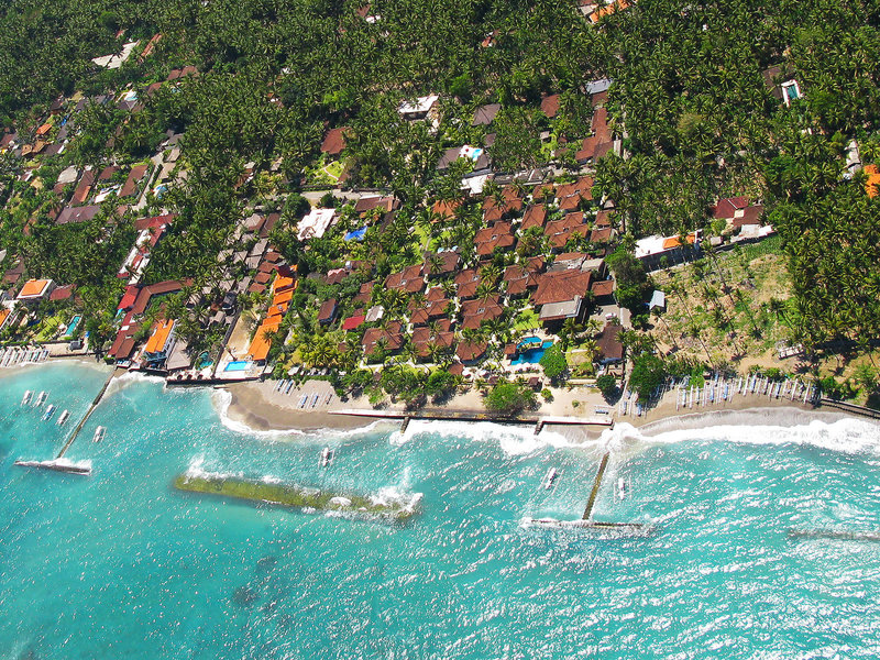 Lage & Umgebung Direkte Strandlage und ungefähr 500 Meter von Candidasa entfernt. Tenganan liegt ca. 2 km entfernt. Restaurants und Einkaufsmöglichkeiten in ca. 15 Gehminuten erreichbar. Transferzeit: ca. 90 Minuten.