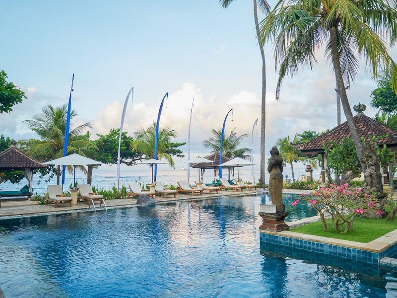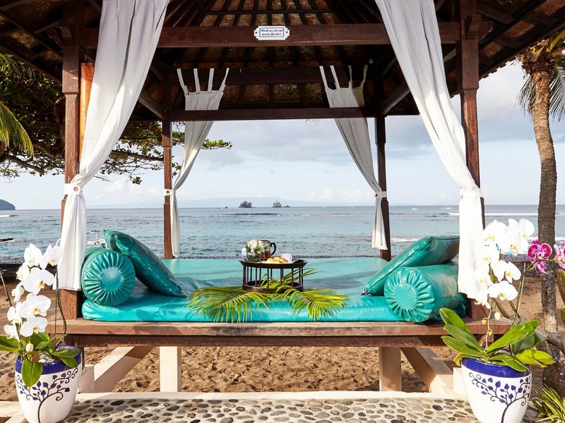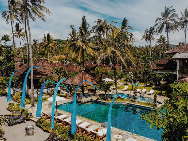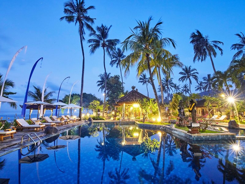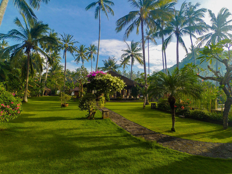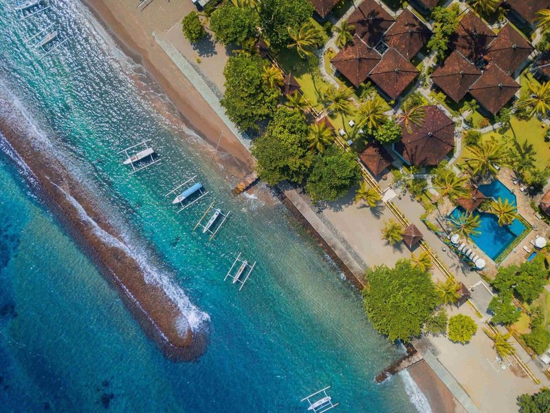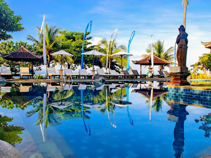 Lage & Umgebung Direkte Strandlage und ungefähr 500 Meter von Candidasa entfernt. Tenganan liegt ca. 2 km entfernt. Restaurants und Einkaufsmöglichkeiten in ca. 15 Gehminuten erreichbar. Transferzeit: ca. 90 Minuten.