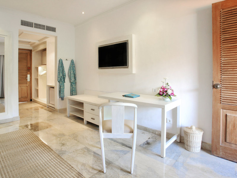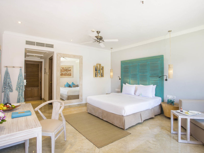 - Sol Room (DZX2), Doppelzimmer, Nichtraucherzimmer, im Hauptgebäude, Gartenseite, ca. 50 - 50 m², Gesamtanzahl der Räume in diesem Zimmertyp: 1, Aufteilung wie folgt: kombiniertes Wohn-/Schlafzimmer, 1 King Size Bett (180x200cm), Babybett: ohne Gebühr, Klimaanlage: individuell regelbar, Fußboden: Fliesenboden, Safe: gegen Gebühr, Deckenventilator, Sofa, Minibar: gegen Gebühr, bei All Inclusive inklusive, Softdrinks: gegen Gebühr, bei All Inclusive inklusive, Wasser: gegen Gebühr, bei All Inclusive inklusive, Snacks: gegen Gebühr, bei All Inclusive inklusive, Minibarauffüllung: täglich, Telefon, Internet: WLAN/WiFi: ohne Gebühr, Fernseher: Flatscreen, im Schlafzimmer, Sat-TV, Roomservice: täglich, gegen Gebühr, Reinigungsservice: täglich, ohne Gebühr, Dusche, Regendusche, WC, Slipper: ohne Gebühr, Föhn, Balkon: mit Sitzgelegenheit