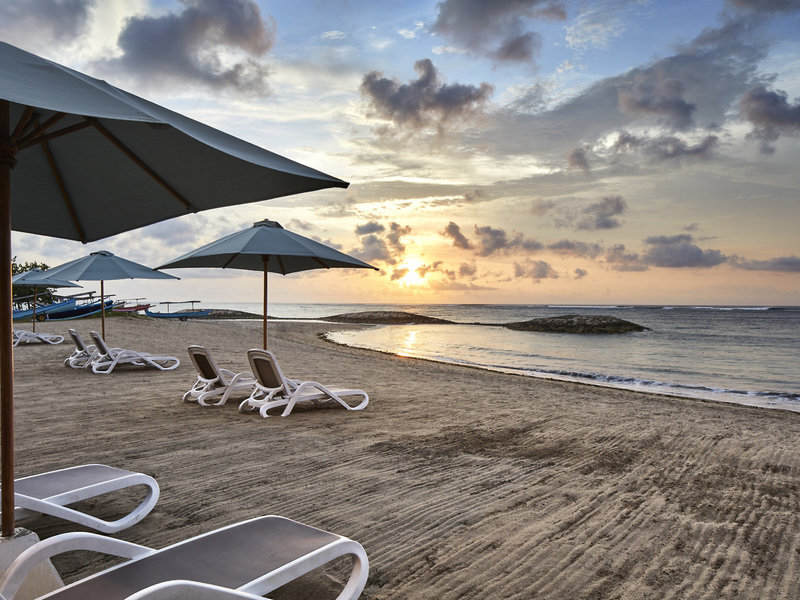 Lage & Umgebung Ein Beachresort mit perfekter Stadtanbindung: Das Hotel befindet sich mitten im Kartika Plaza-Viertel in Kuta. Die Kombination aus direkter Strandlage und dennoch kurzen Wegen zu einigen Attraktionen ermöglicht Gästen einen abwechslungsreichen Aufenthalt. Nur etwa 500 Meter sind es zum Beispiel bis zum Erlebnisbad „Waterbom Bali“ oder dem Einkaufszentrum „Discovery“.