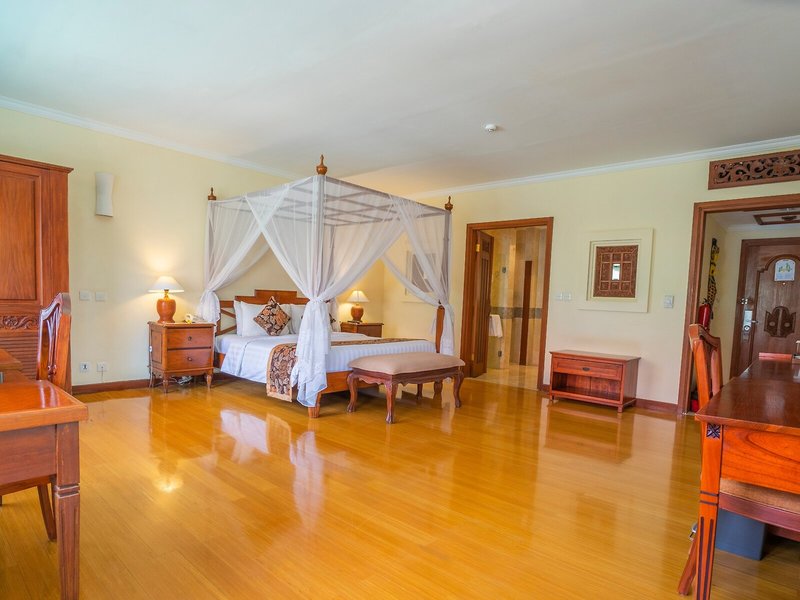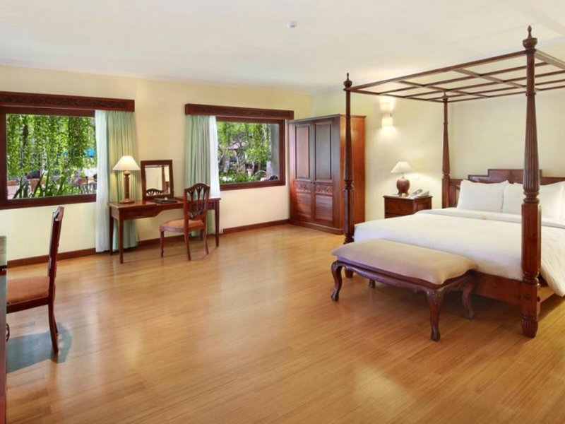 Elhelyezkedés és környezet Az exkluzív szálloda Bali déli félszigetének egy csendes mellékutcájában található. A jól ismert és turisták által kedvelt Nusa Dua területén a szálloda területe a népszerű Bali Golf & Country Club szomszédságában található. A szálloda saját homokos strandja és strandbárja körülbelül 2 km-re található. A vendégeket rendszeresen ingyenes transzferbusz viszi oda. Néhány étterem és butik sétatávolságra található a szállodától. A Galeria bevásárlóközpont körülbelül 20 perces sétával elérhető. Az ingyenes busztranszfer átszállási ideje a repülőtérre körülbelül 20 perc 12 kilométeres távolságból. Bali fővárosa, Denpasar körülbelül 30 km-re található a szállodától.
