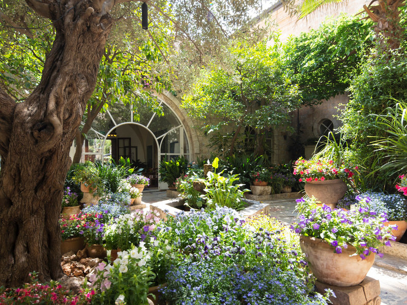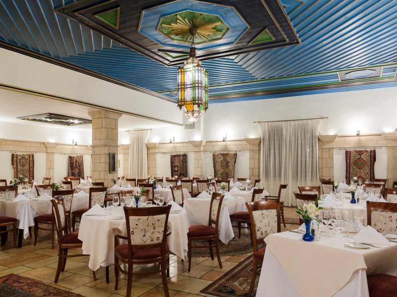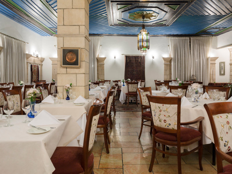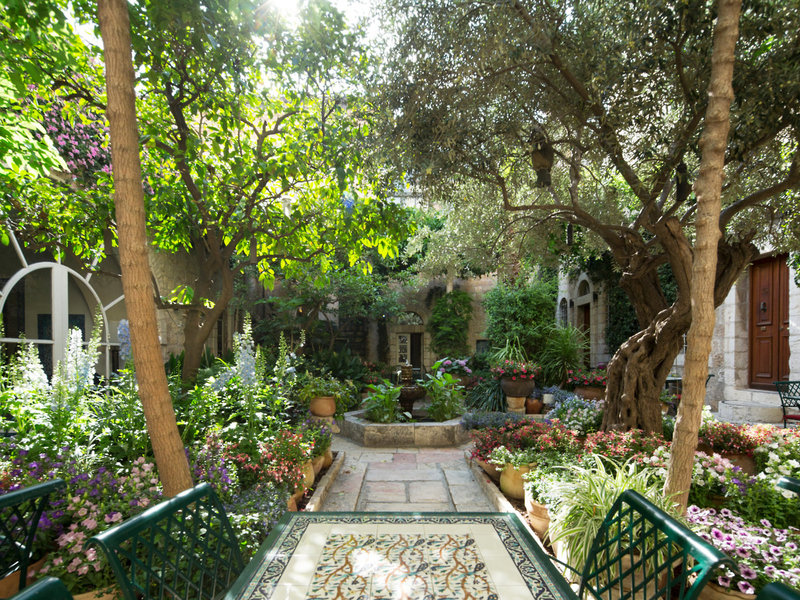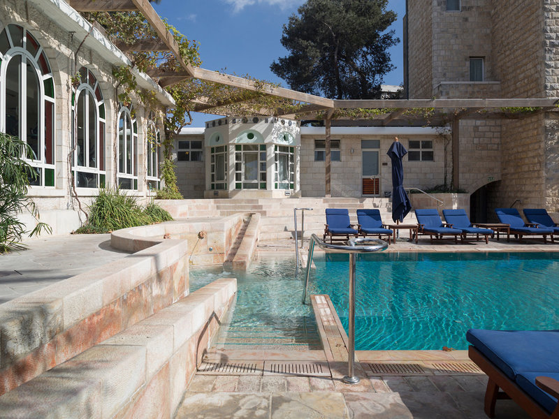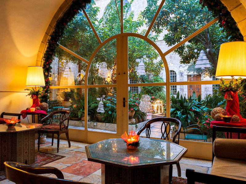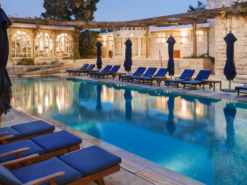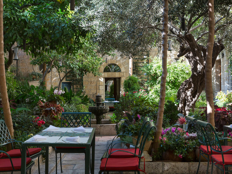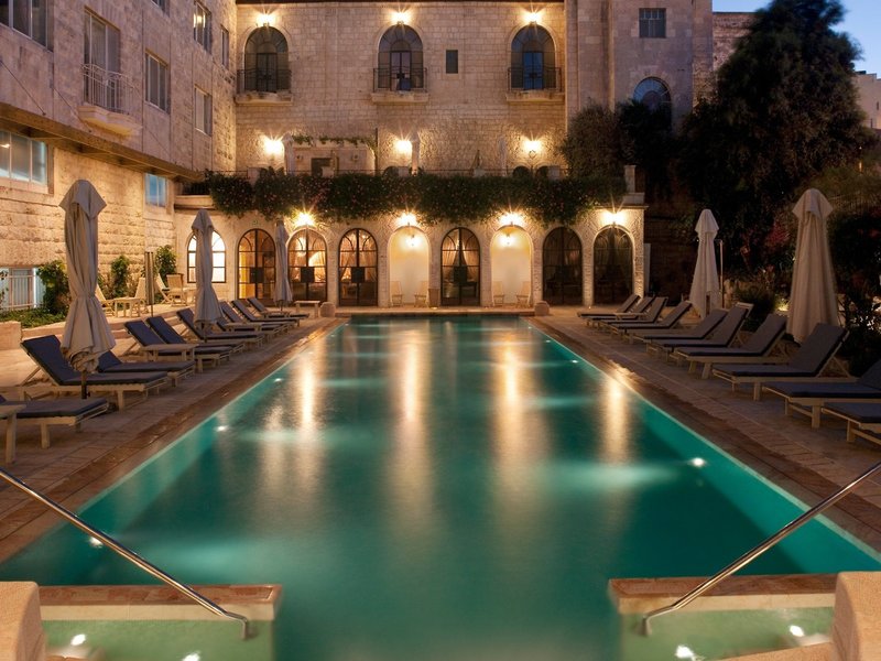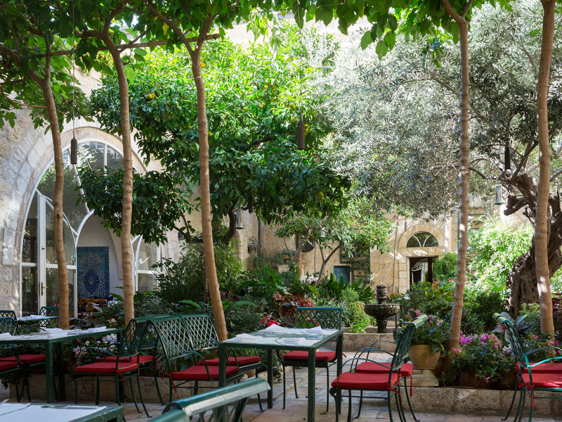 Lage & Umgebung Das Hotel liegt in Jerusalem, seine 4 separaten Häuser – Main House, East House, Palm House und Cow Byre – sind von orientalischen Gärten umsäumt. Die Sehenswürdigkeiten des alten Jerusalem befinden sich in der Nähe: Die Klagemauer ca. 1,5 km, der Felsendom ca. 1,6 km und die Grabeskirche ca. 1,5 km entfernt. Ins moderne Stadtzentrum gelangt man mit der Straßenbahn, die Haltestelle ist ca. 400 m entfernt.