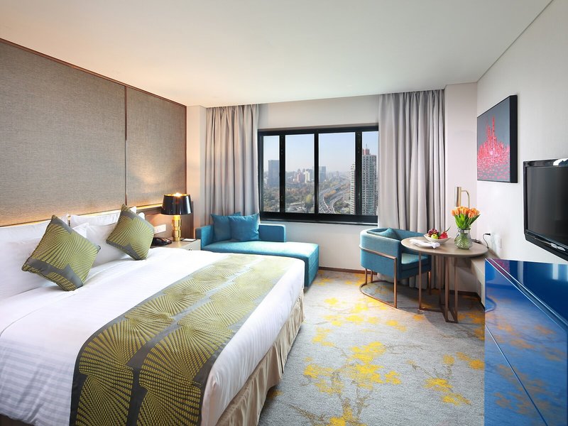 Elhelyezkedés és környék Ez a városi szálloda stratégiai helyen, a Honggiao Gazdasági Fejlesztési Zónában található, körülbelül 1 km-re a Sanghaji Nemzetközi Kiállítási Központtól és közel a külkereskedelmi irodákhoz, egy nagyobb irodaközponthoz és számos nagykövetséghez. A Honggiao repülőtér körülbelül 7 km-re található az üzleti szállodától.