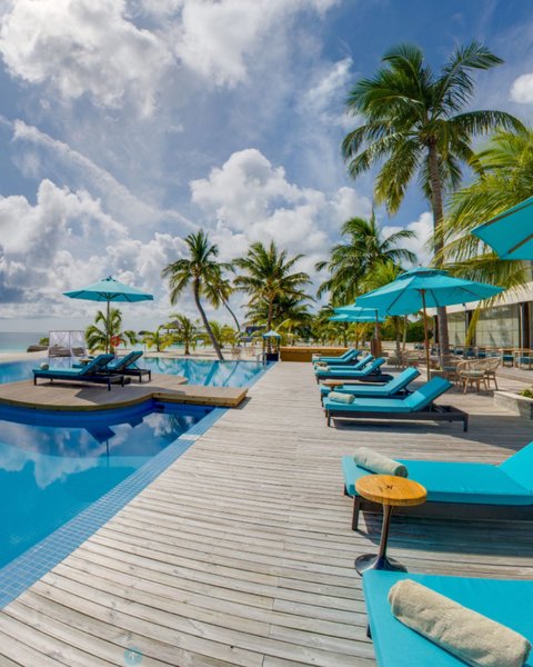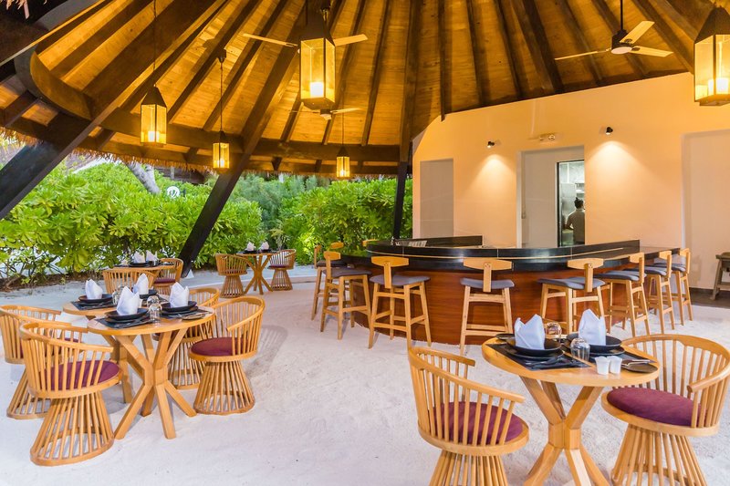 Ausstattung: Ihr Urlaubsresort verspricht einen Aufenthalt in entspannter Atmosphäre. Es verfügt über insgesamt 72 Villen, die sich an Land und auf Stelzen über dem Wasser befinden. Zu den Annehmlichkeiten gehört ein offener Empfangsbereich mit Rezeption und ein Souvenirshop. Für das leibliche Wohl sorgen insgesamt drei Restaurants und eine Bar. Unter anderem das "Iru" Hauptrestaurant mit internationaler Küche, das "Washoku" Restaurant mit japanischen Spezialitäten und Teppanyaki und das "Flame" Overwater Grillrestaurant. Für Abwechslung und erholsame Stunden sorgt ein Swimmingpool mit separatem Kinderbecken. Liegen, Badetücher und Sonnenschirme stehen hier und am Strand kostenfrei zur Verfügung.