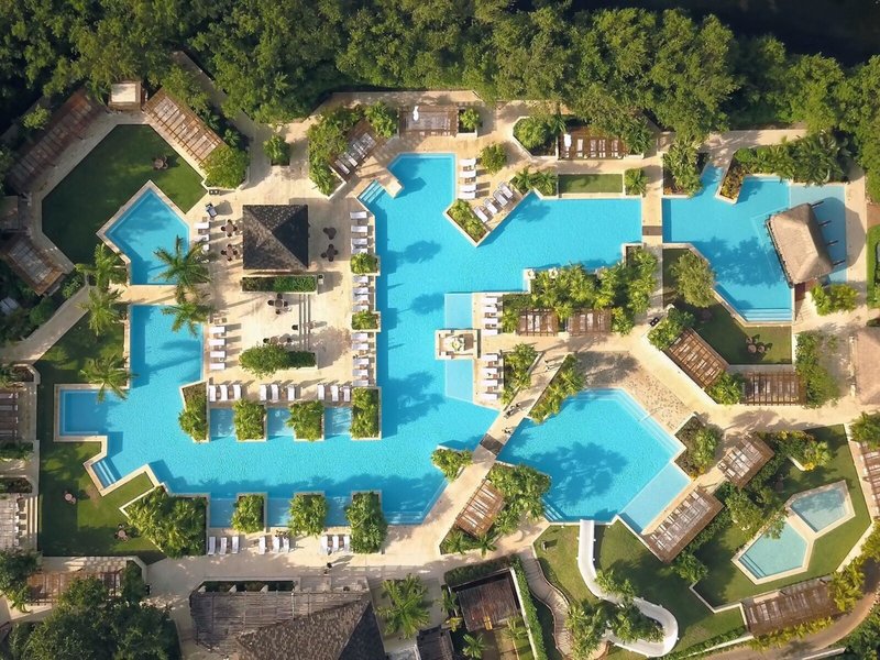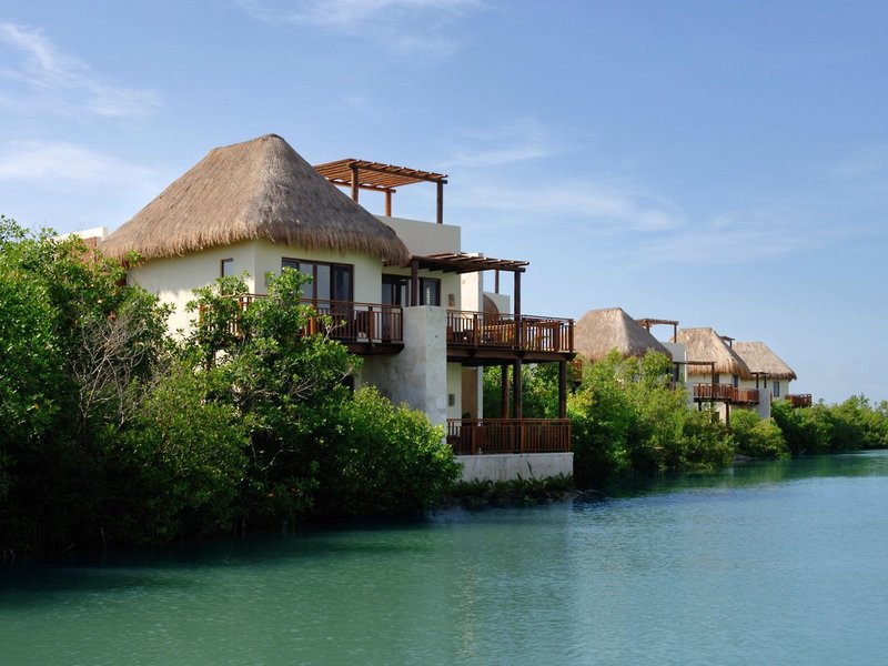 Lage & Umgebung Dieses autofreie Resort inmitten eines üppigen tropischen Waldes besteht aus einer Reihe von niedrigen Gebäuden, die durch Wasserwege miteinander verbunden sind. Der 18-Loch-Golfplatz El Camaleón ist ca. 400 m entfernt. Zum Strand Mayakoba Beach sind es ca. 500 m. Transferzeit Flughafen Cancun: ca. 75 Minuten. Transferzeit Flughafen Tulum: ca. 2,5 Stunden.