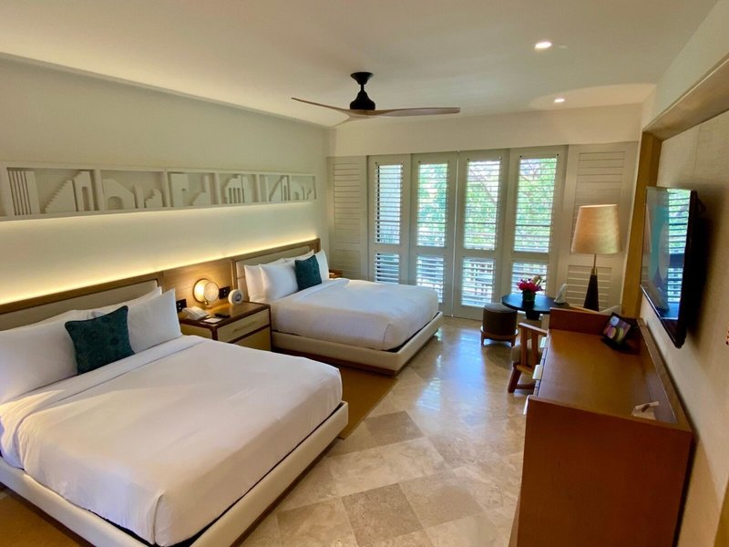 - Deluxe Casita Double (DZX2), kétágyas szoba, nemdohányzó szoba, szárazföldi, kert felőli, kertre néző, kb. 43 - 47 m², utolsó teljes felújítás 2022, utolsó részleges felújítás 2018, összesen szobaszám ebben a szobatípusban: 1, elrendezése a következő: nappali/hálószoba , 2 queen méretű ágy (152,4x203,2 cm), légkondicionálás: egyénileg állítható, fűtés: egyénileg szabályozható, padló: járólap, széf: ingyenes, mennyezeti ventilátor, íróasztal, vasaló, vasalódeszka, kávé/teafőző, minibár: térítés ellenében, all inclusive, üdítők: térítés ellenében, all inclusive, víz: térítés ellenében, all inclusive tartalmazza, alkoholos italok: térítés ellenében , all inclusive ellátással, harapnivalók: térítés ellenében, all inclusive ellátással, minibár töltés: naponta 09:00-17:00, telefon, Internet: WLAN/WiFi: ingyenes, TV: síkképernyős, a hálószoba, kábeltévé, rádió, szobaszerviz: naponta, térítés ellenében, all inclusive, takarítás szolgáltatás, külön zuhanyzó, fürdőkád, külön WC, fürdőköpeny: ingyenes, papucs: ingyenes, hajszárító, sminktükör, erkély vagy terasz: ülőgarnitúrával