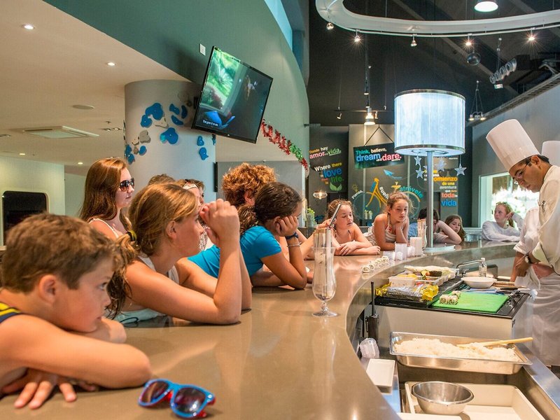 Essen & Trinken: Es stehen verschiedene gastronomische Einrichtungen zur Auswahl, wie ein Restaurant (mit Kinderhochstühlen), ein Frühstückssaal, ein Café und eine Bar. Erfrischende Drinks an der Strandbar sorgen für Wohlfühlmomente. Die Unterkunft bietet als buchbare Verpflegungsleistung All-Inclusive. Ein reichhaltiges Frühstücksbuffet garantiert einen guten Start in den Tag. Mittags und abends gibt es die Wahl zwischen Buffet, à la carte und Menü. Diätgerichte, vegetarische Gerichte und Kindermenüs werden auf Wunsch zubereitet. Zusätzlich sind spezielle Verpflegungsangebote, Picknick und Snacks erhältlich. Alkoholische und alkoholfreie Getränke sind für die Gäste inklusive.