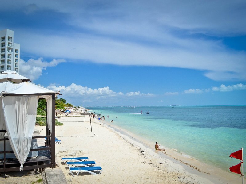 Lage & Umgebung Das Hotel befindet sich zwischen den Stränden Playa Langosta und Playa Tortas. Sie erreichen von dort aus mit dem Bus die Stadtmitte von Cancún in weniger als 10 min, wo man den Mercado 28 besuchen können oder beliebte Supermärkte oder die Plaza de las Americas vorfindet. Unterhaltungs- und Einkaufsmöglichkeiten findet man in der Nähe. Direkt neben der Anlage befindet sich der Beachclub mit vielen Wassersportmöglichkeiten. Man benötigt ca. 25 min Transferzeit vom internationalen Flughafen Cancún.