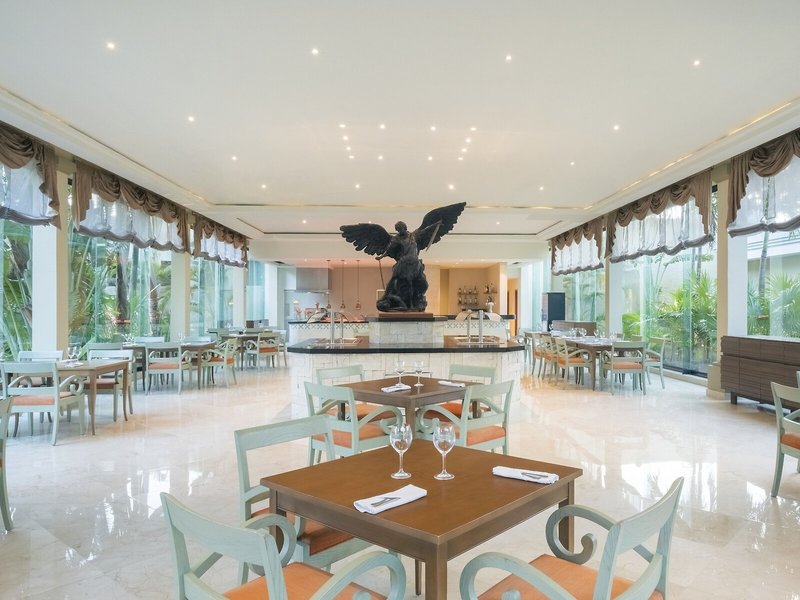Essen & Trinken: Der gastronomische Bereich wartet mit den 5 Restaurants und einer Bar auf. Es kann All-Inclusive gebucht werden. Ein leckeres und reichhaltiges Buffet erwartet die Gäste zum Frühstück, Mittag- und Abendessen. Darüber hinaus stellt das Haus Snacks bereit. Alkoholische und alkoholfreie Getränke sind für die Gäste inklusive.